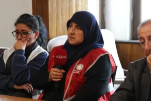 FADİME KIRIKKANAT: 17 bin lirayla kim geçinebilir. Cumhurbaşkanı’na sesleniyorum. Kendisi geçinebiliyorsa buyursun geçinsin. Çalmadık, çırpmadık. Hakkımızı istedik, dövüldük hırpalandık. Emniyet Müdürü görevini yapabilir ama işçiye neden öfkeyle bakıyor. Boğazımızı sıktı polisler… Cumhurbaşkanı da duyacaktır, aynı şeyler sizin çocuğunuzun başına gelmez. Siz zenginsiniz. Ama biz aşağıdayız diye bunları yaşamak zorunda değiliz. Sonu ölüm dahi olsa, son nefesime kadar mücadeleye devam edeceğim.