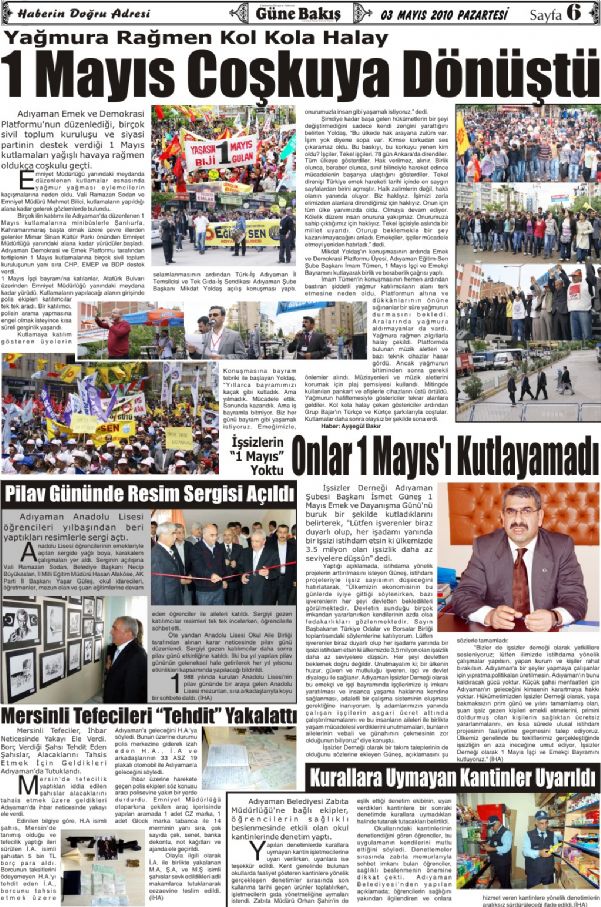 Sağlık ve sigorta haklarımızdaki mağduriyetin giderilmesini, asgari ücretin insan onuruna yakışır olmasını, iş sağlığı ve güvenliği önlemlerinin arttırılmasını, örgütlenmenin önündeki engellerin kaldırılmasını, taşeronlaşma ve kayıt dışı ekonominin engellenmesini, özelleştirmelerin durdurulmasını, sosyal devletin daha etkin olmasını, emekçilerin sesine kulak verilmesini istiyoruz. Kadınlar üzerindeki her türlü cinsel, ulusal, sınıfsal baskı ve sömürünün son bulmasını istiyoruz. kürt sorununun demokratik barışçıl yollarla çözülmesini istiyoruz. Başta aleviler olmak üzere tüm inançların kendilerini tanımladıkları şekilde özgürce yaşamalarını istiyoruz. Hükümetin Adıyaman yapısına uygun bir ekonomik paketle ve özellikle tarım ve hayvancılık alanında yatırım yapmasını istiyoruz. Tütün üretiminin ve pazarlanmasının önündeki yasakların kaldırılmasını istiyoruz. Hükümetler bu taleplerimizi karşılamazlar ise kendi hakkımızı yasaların bize verdiği demokratik güçle ve örgütlü mücadelemizle meydanlarda alacağız.