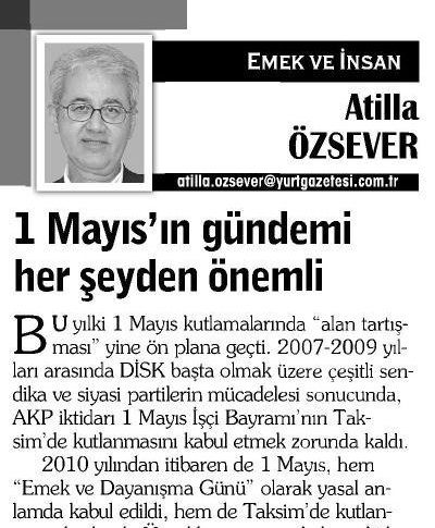 Bu koşullarda 1 Mayıs’ın tarihsel anlamına uygun olarak mevcut gündemi dikkate alan bir etkinliğin yapılması daha fazla önem kazanıyor. 1 Mayıs’ın esas gündemini oluşturan konular ve talepler üzerine odaklaşmak, AKP ve sermayenin saldırıları karşısında birleşik bir emek hareketinin yaratılması yönünde çaba harcamak, daha doğru bir strateji olarak gözüküyor.