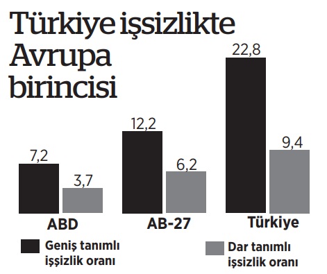 Seçimler öncesinde istihdam düzeyi korunmuş ve artmış olmasına rağmen buna çok kıymet atfedilmediği, bir diğer ifadeyle istihdamı korumak ve artırmanın AKP’nin oylarını korumaya ve artırmaya yetmediği görüldü. Bakılması gereken yer doğrudan istihdamdan ziyade geniş tanımlı işsiz sayısı ve oranındaki artıştır. 2024’te geniş tanımlı işsizlik pandemi dönemi hariç en yüksek düzey ve orana ulaştı. Pandemi öncesinde yüzde 20’nin altında olan geniş tanımlı işsizlik oranı pandemide yüzde 29’a kadar çıktı ve ardından Ocak 2023’te yüzde 21’e kadar geriledi. Ancak Ocak 2024’te yüzde 26,5’a yükseldi. 2023 Ocak ayında 8,3 milyon olan geniş tanımlı işsiz sayısı Ocak 2024’te 10,5 milyona yaklaştı. 1,4 milyon olan zamana bağlı eksik istihdam sayısı 3,2 milyona çıktı.
