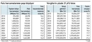 100 TL VERGİ GELİRİNİN 21 LİRASI FAİZE GİDİYOR