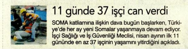 SOMA katliamına ilişkin dava bugün başlarken, Türkiye´de her ay yeni Somalar yaşanmaya devam ediyor.