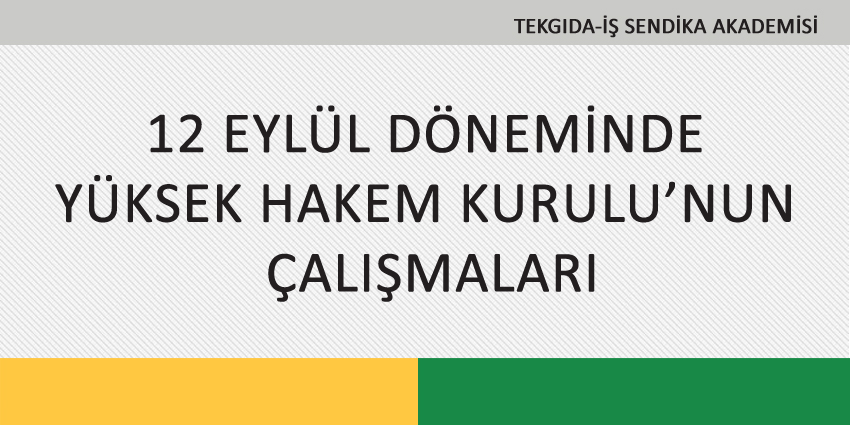 12 EYLÜL DÖNEMİNDE YÜKSEK HAKEM KURULU’NUN ÇALIŞMALARI