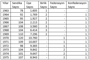 Çalışma Bakanlığı verilerine göre, 1963-1971 döneminde Türkiye’deki işveren sendikaları ve üst örgütleri sayıları aşağıda sunulmaktadır (Çalışma Bakanlığı, Çalışma Dergisi, Yıl 1972, Cilt 1, Sayı 2, s.120; Çalışma Bakanlığı, Çalışma Dergisi, Yıl 1974, Cilt 1, Sayı 1, s.169; Çalışma Bakanlığı, Çalışma Dergisi, Yıl 1977, Cilt 1, Sayı 1, s.104):