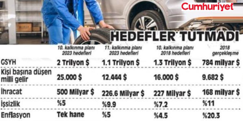 2013’te ilan edilen 10. Kalkınma Planı’ndaki 2023 hedeflerinde sert düşüşlere gidilirken, eski plandaki 2018 hedeflerine ulaşılamadı.