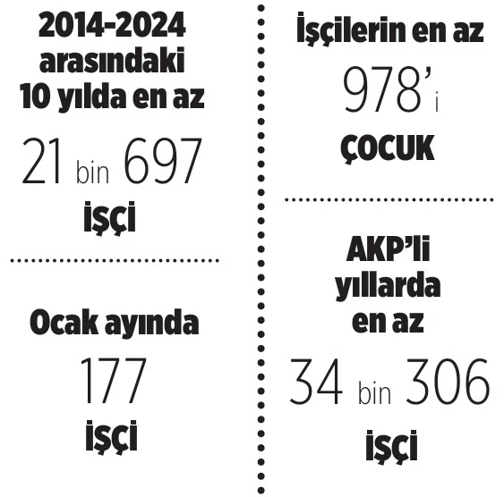 2014 ile 2024 arasını kapsayan 10 yılda en az 21 bin 697 işçi alınmayan önlemler sonucu çalışırken hayatını kaybetti.