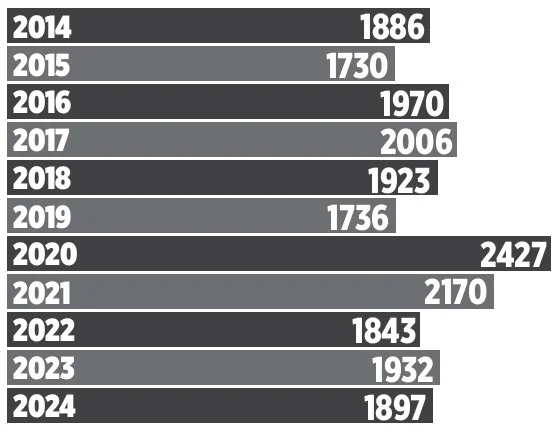 2014-2024 arası 10 yılda ise en az 21 bin 697 işçi alınmayan önlemler ve ihmal yüzünden çalışırken yaşamını yitirdi. AKP’nin iktidara geldiği 2002 yılından bu yana yaşanan iş cinayeti sayısı ise en az 34 bin 306. 34 bin 306 iş cinayetinin en az 978’inde ise çocuklar hayatını kaybetti.