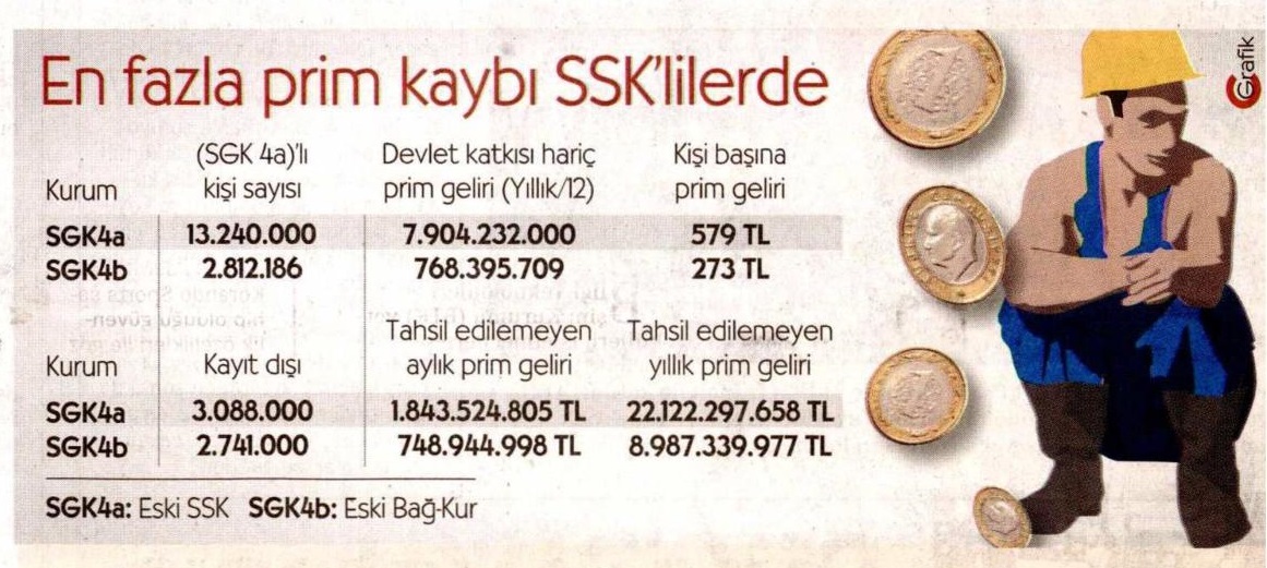 İstanbul Serbest Muhasebeci Mali Müşavirler Odası (İSMMMO), Kayıt Dışı İstihdam ve Sosyal Güvenlik Sistemi raporuna göre, Türkiye´de kayıtdışı ekonominin Sosyal Güvenlik Sistemi´ne zararı 30 milyar TL´nin üzerinde.
