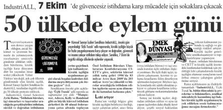Küresel Sanayi İşçileri Sendikası IndustriALL, önceki gün yayımladığı ‘Üçlü Tuzak’ adlı raporunda, kiralık işçiliğin büyük bir hızla yaygınlaşmasına karşı çıkıyor ve doğrudan, güvenceli ve insana yakışır istihdam talep ediyor. Sendika, 7 Ekim’de örgütlü olduğu ülkelerde eylemler yapacak.