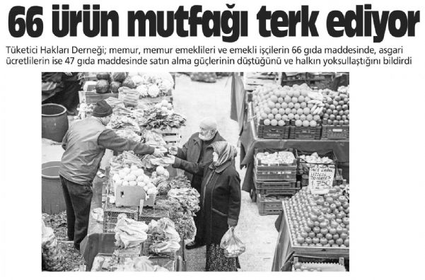 Tüketici Hakları Derneği; memur, memur emeklileri ve emekli işçilerin 66 gıda maddesinde, asgari ücretlilerin ise 47 gıda maddesinde satın alma güçlerinin düştüğünü ve halkın yoksullaştığını bildirdi