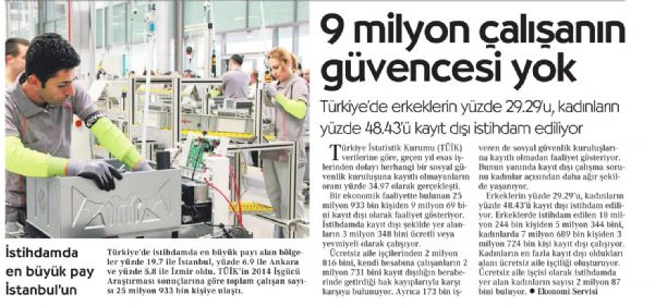 9 MİLYON ÇALIŞANIN GÜVENCESİ YOK