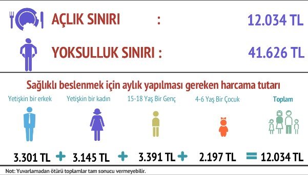 Bu, bir ay içinde açlık sınırının 509 TL, yoksulluk sınırının ise tam 1740 TL birden artması demek.
