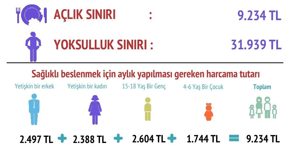 Bir ailenin kira, fatura, ulaşım, eğitim, sağlık, giyim gibi aylık tüm harcamalarını kapsayan yoksulluk sınırı ise şubat ayında 31 bin 939 TL’ye ulaştı.