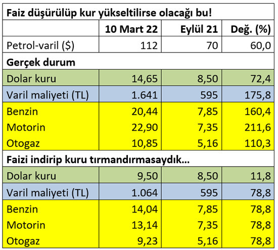 “Eylül’de başlayarak faizi indirmeyip döviz kurunun normal seyrinde artmasını sağlasaydık, acaba şu an akaryakıt kaç lira olurdu?”
