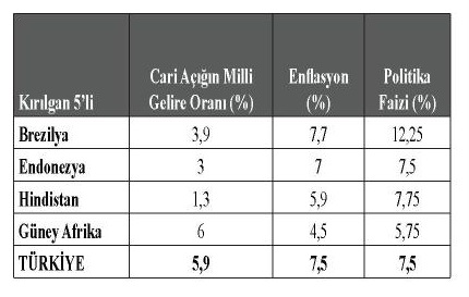 Türkiye; Brezilya, Endonezya, Hindistan ve Güney Afrika’yla birlikte "kırılgan beşli" olarak tarif edilen dış açıklara karşı en dayanıksız ekonomilerden biri olarak tanımlanıyor. Hatta bu en dayanıksız ekonomilerin içinde de en dayanıksızı olarak görülüyor. Dolayısıyla bugün söz konusu "dolar sorunu"nun en fazla sorun olduğu ülkelerin başında geliyor. Misal, dolar birçok ülkenin parası karşısında değerleniyor tamam da, örneğin 1 Ocak-4 Mart tarihleri arasında dolar karşısında Brezilya Reali yüzde 9.87’lik, Güney Afrika’nın Randı %1,89’luk, Endonezya Rupiahı 4.84 oranında değer kaybederken Türk Lirasındaki değer kaybı neden yüzde10,35 oluyor?