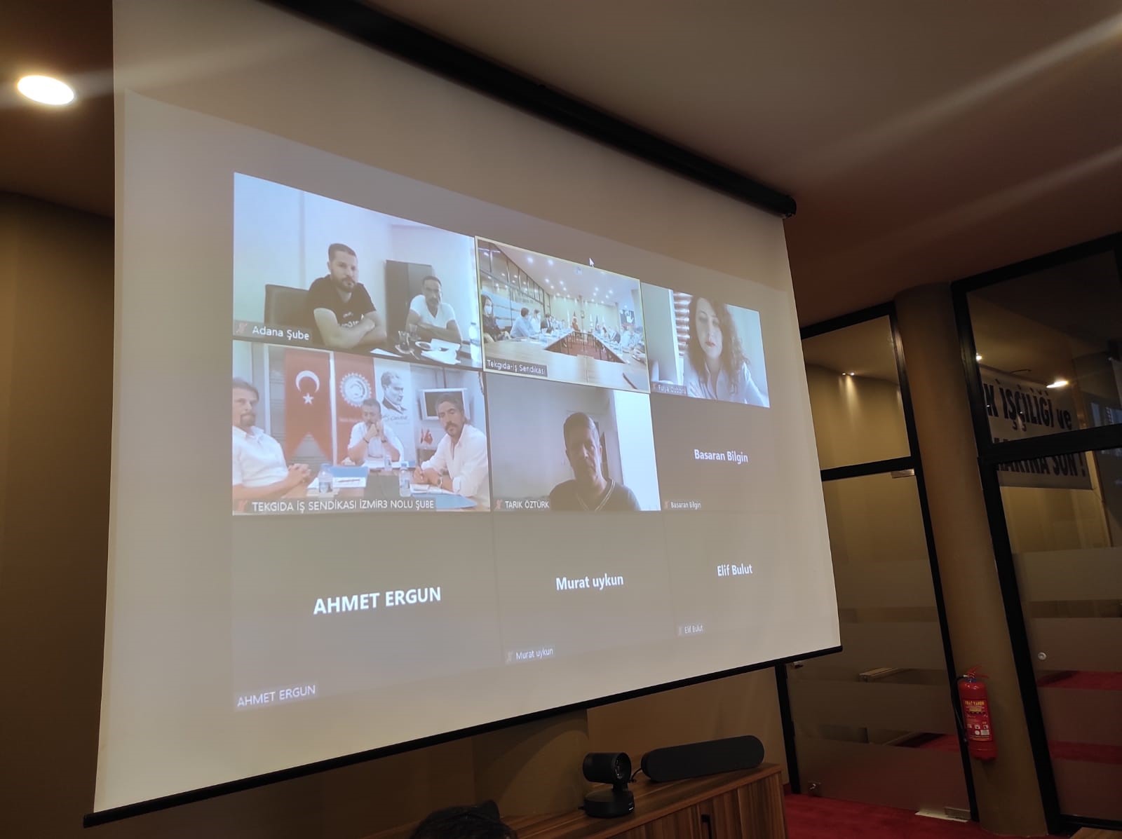 Sendikamızın genel merkezinde yapılan toplantıya sendikamız adına Genel Başkanımız Mustafa Türkel, Genel Sekreterimiz Mustafa Akyürek, İzmir 3 Nolu Şube Mali Sekreterimiz Mefail Şenal, Hukuk Müşavirimiz Avukat Nilgün Çelik Türkmen, ArGe Uzmanımız Tarık Tekgözli ve İşyeri Sendika Temsilcilerimiz Yusuf Kökçü, İbrahim Çetinkaya, Şahin Filizli, Zafer Doğan, Harun Anavatan, İlker Toğay, Erhan Rona, Murat Uykun, Tarık Öztürk, Erhan Akova, Mustafa Akkaya katıldı. Toplantıya işveren adına ise Grup İnsan Kaynakları Direktörü Banu Fatma Artüz, Türkiye İnsan Kaynakları Direktörü Salih Emre Kavukcuoğlu, Ücret Yönetimi ve Endüstriyel İlişkiler Direktörü Tulu Sıtkı Özütürk, İnsan Kaynakları İş Ortağı Müdürü Esra Vatan, Ücret ve Yan Haklar Müdürü Başaran Bilgin, İnsan Kaynakları Ortak Hizmetler Müdürü Fulya Özbörü, İnsan Kaynakları İş Ortağı Yöneticilerinden Mehmet Canbolat, Galip Caner Serbes, Cem Ensari ile Ücret ve Yan Haklar Yöneticisi Damla Süray Şendur katıldı.