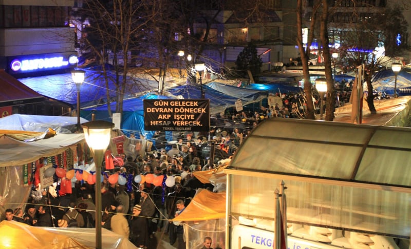 15 Aralık 2009 günü 6 bin TEKEL işçisi Ankara’da bir araya gelerek AKP Genel Merkezi’ne yürümek istedi ancak yürüyüşe izin verilmedi. Abdi İpekçi Parkı’nda beklemeyi sürdüren işçiler, ertesi gün polisin müdahalesine uğradı. Ardından TEKEL işçisinin sesi, dalga dalga ülkeye yayılmaya başladı. 22 Aralık 2009’da Abdi İpekçi parkına çadırlar kuruldu, 25 Aralık’ta ise sendika ve konfederasyonlar bir saatlik iş bırakma eylemi gerçekleştirdi. 28 Aralık’ta Türk-İş Başkanlar Kurulu bir araya geldikten sonra Güvenpark’tan TBMM’ye yürüdü. 2010’un ilk gününde dönemin başbakanı Erdoğan direniş çadırında yatan 10 bin işçi için şunları söyledi: “Bunlar 300-500 kişi.”