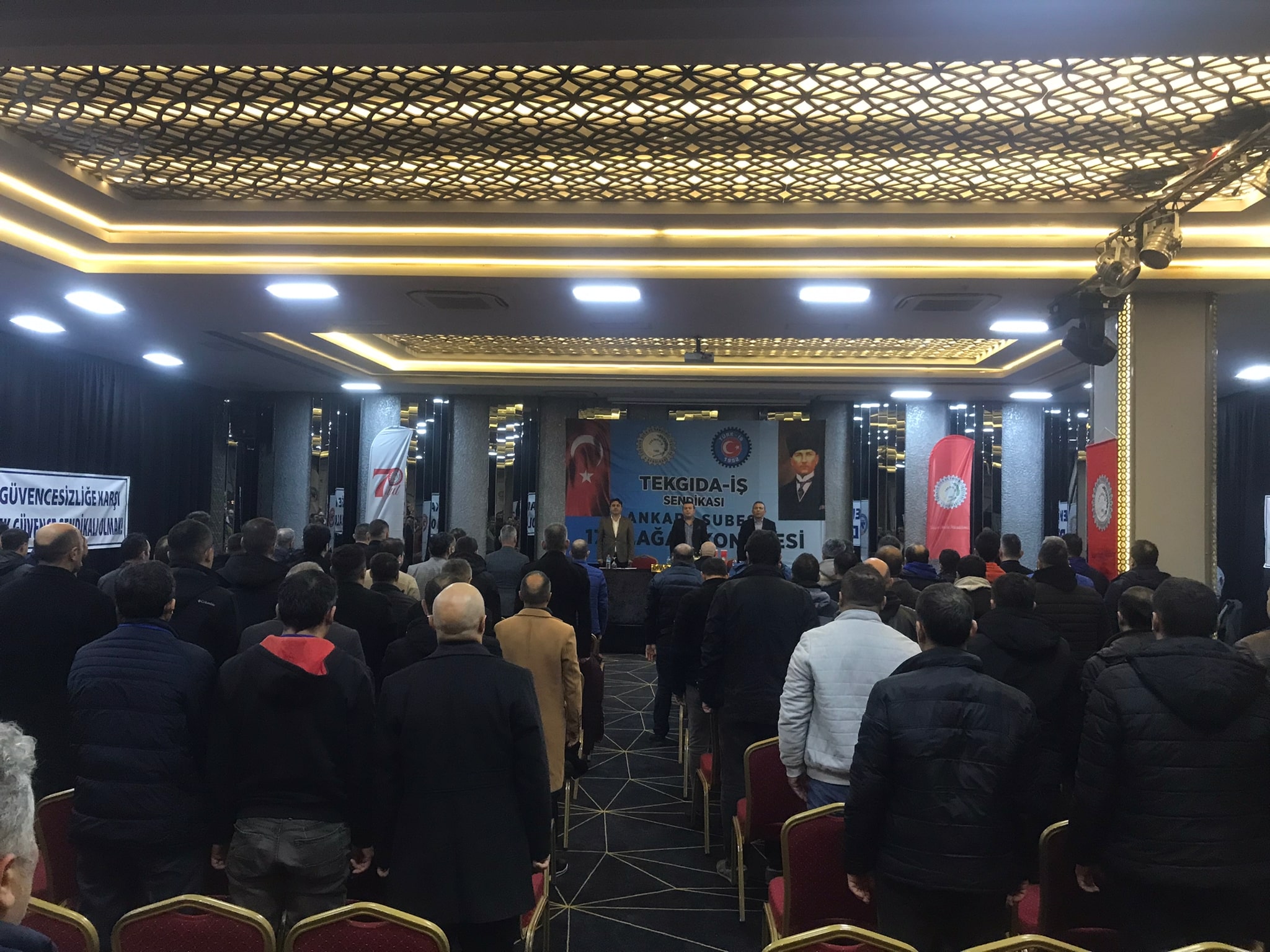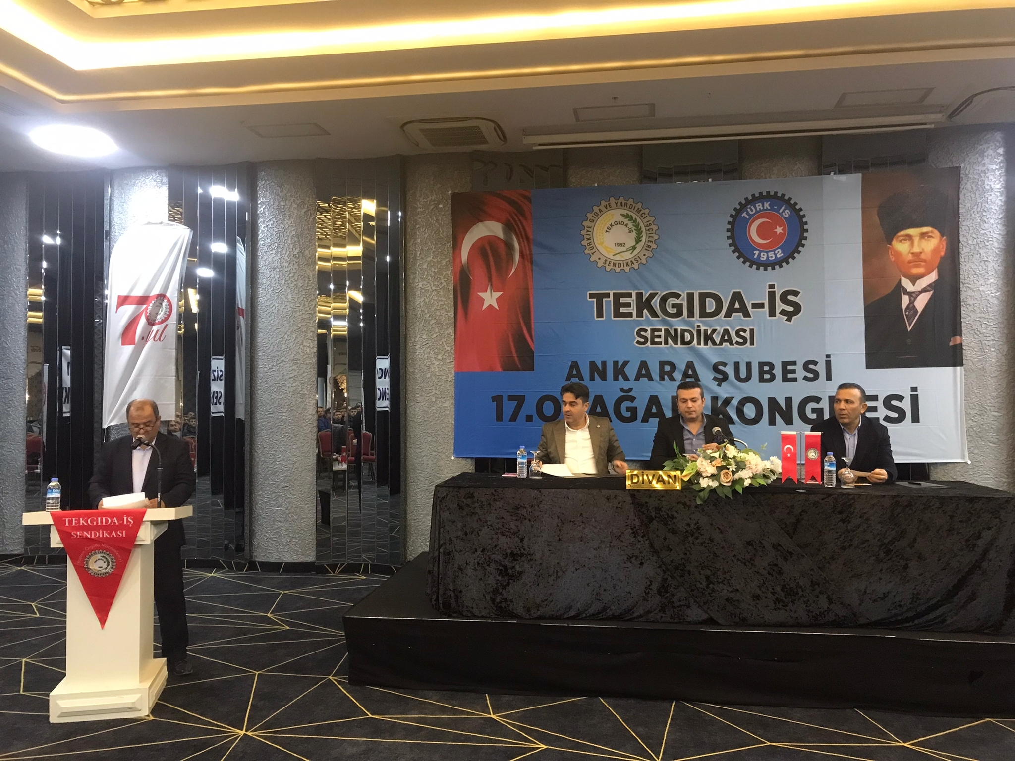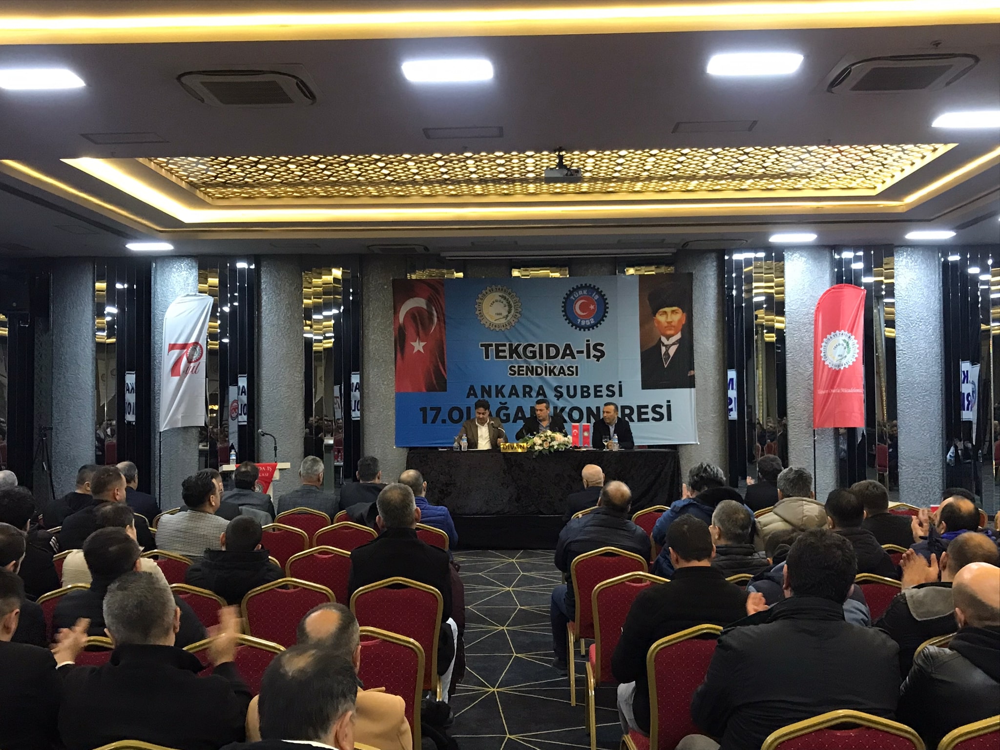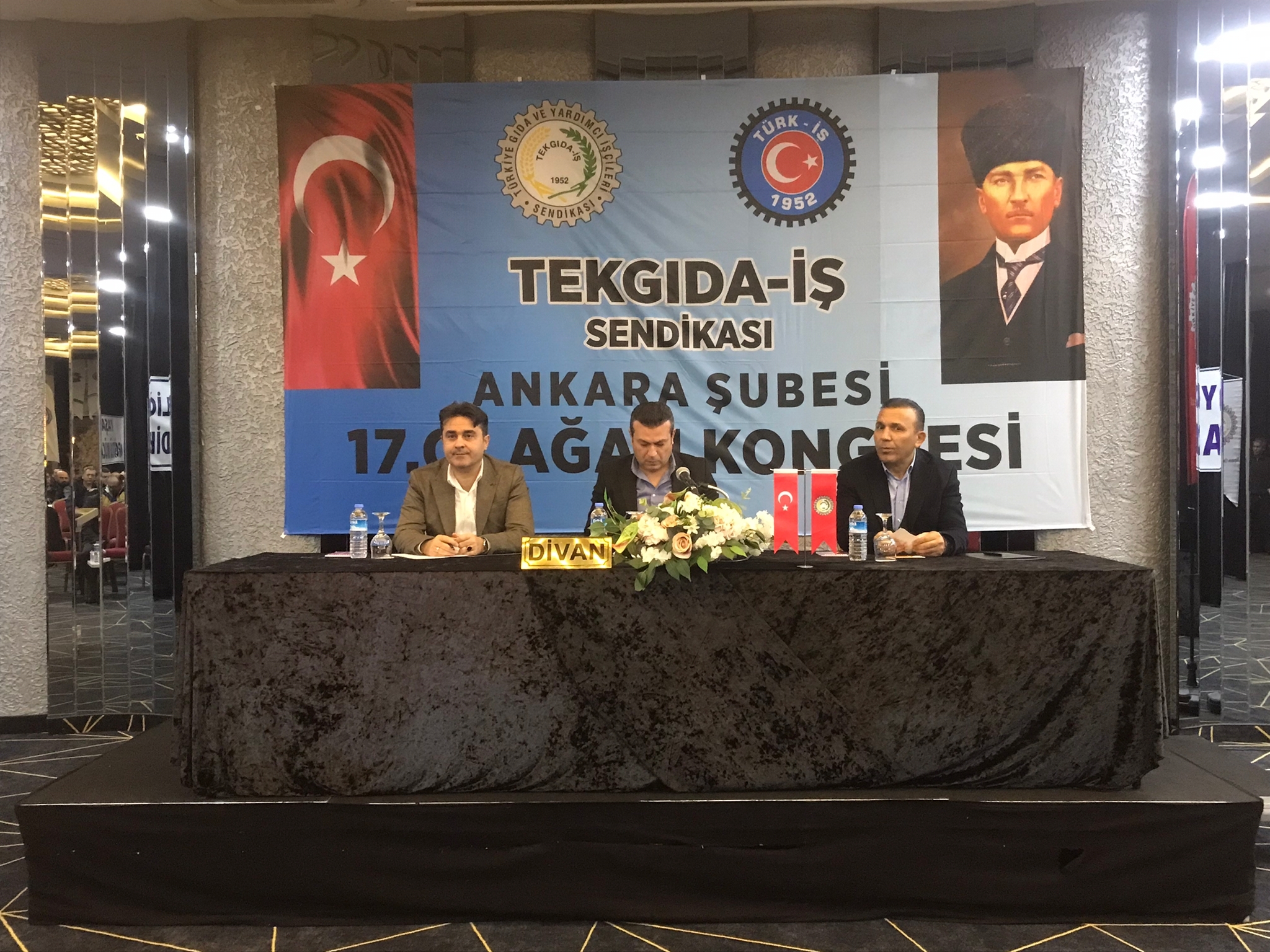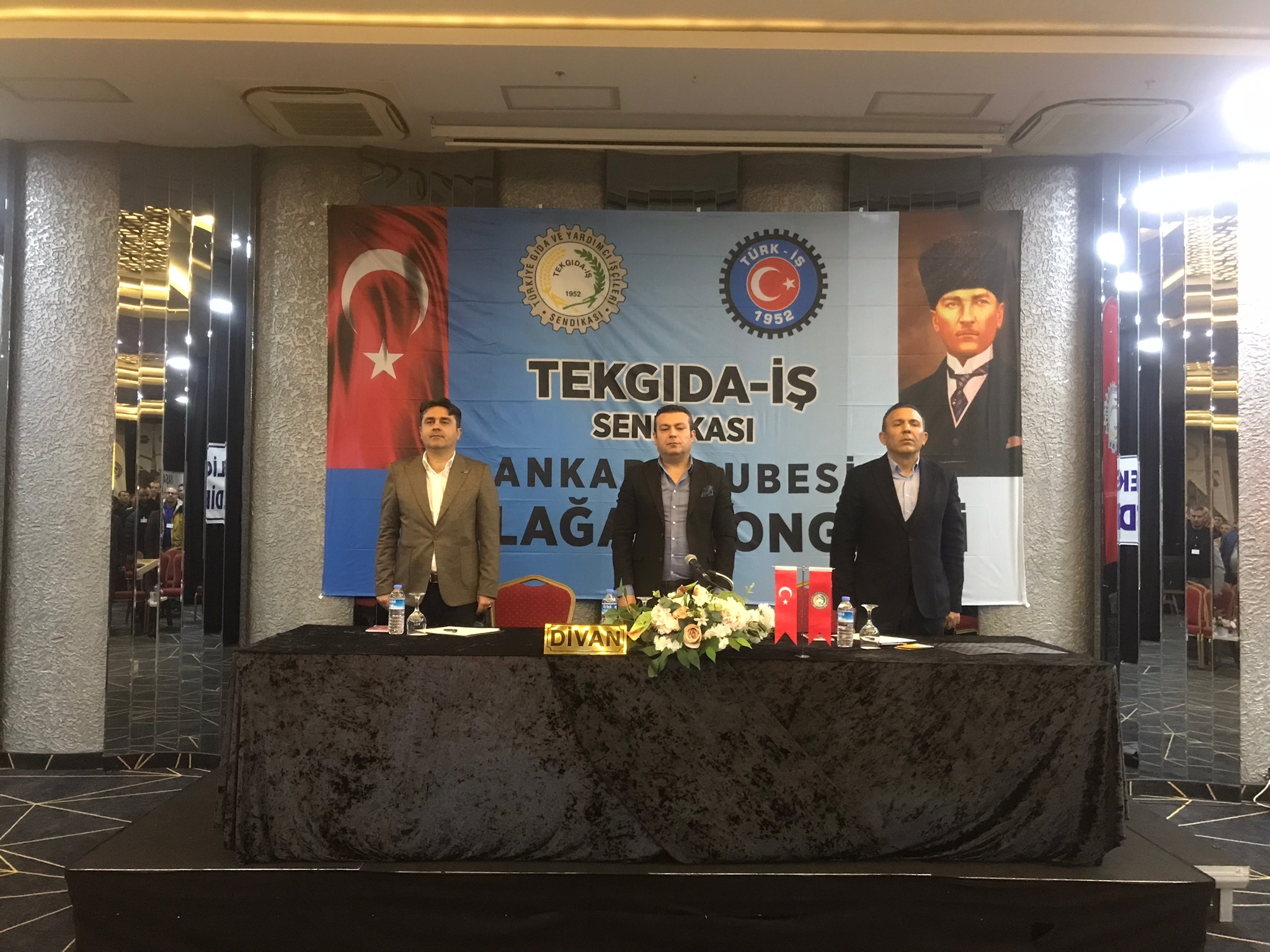 Kongre, Ankara Şube Başkanı İsmail Ilıcan tarafından yapılan açılış konuşması ile başladı. Sonrasında delegelerin önergesi ile kongreyi yönetmek üzere Divan Kurulu oluşturuldu. Divan Kurulu Başkanlığına Genel Teşkilatlanma Sekreterimiz İbrahim Ören, Divan Kurulu Üyeliklerine; Genel Mali Sekreterimiz Ali Bükülmez ve Genel Eğitim Sekreterimiz Kemal Köse seçildi. Divan Kurulu yerini aldıktan sonra başta Mustafa Kemal Atatürk ve Kurtuluş Savaşı şehitleri olmak üzere iş kazalarında hayatını kaybeden işçilerin anısına bir dakikalık saygı duruşunda bulunuldu ve İstiklal Marşı okundu. Misafirlerin tanıtımı sonrası konuşmalara geçildi. Şube Başkan Adayı Ali Solmaz bir konuşma yaptı. Daha sonra Genel Teşkilatlanma Sekreterimiz İbrahim Ören de Genel Başkanımız Mustafa Türkel ve Genel Sekreterimiz Mustafa Akyürek’in selamlarını iletti. Konuşmasında 2021 yılından bu yana Tekgıda-İş’in yüzde 25 büyüdüğünü de belirten Ören, tavuk sektöründe ciddi bir örgütlenme içinde olduklarını aktardı. Türkiye’nin zor bir süreçten geçtiğini ve bir ekonomik kriz yaşadığını söyleyen Ören, bir yandan asgari ücrete artış yapılırken diğer yandan her şeye zam yapılmaya devam ettiğini, bunun geçmişteki asgari ücret artış dönemlerinde yaşanmadığına dikkat çekerek, “Bu tür öngörülemeyen olağandışı dönemler nedeniyle toplu iş sözleşmelerde yeni yol ve yöntemler geliştirmek zorunda kalıyoruz” dedi.