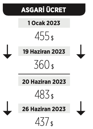 Açıklandığı gün 482 dolara karşılık gelen yeni asgari ücret, doların 26 TL’yi aşmasıyla cebe girmeden 45 dolar eridi.