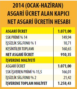 Tavan ücretin üzerinde ödeme yapıldığında, aşan kısım üzerinden SSK (4/a) sigorta primi (işçi ve işveren payı) kesilmeyecek. Taban ücret ise, 2014’ün ilk 6 ayında 1.071 TL, ikinci 6 ayında ise 1.134 TL (brüt) olacak.