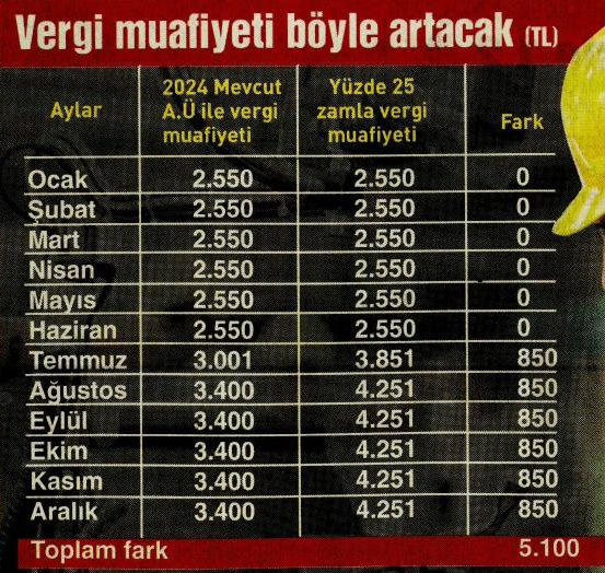Sağlık Emekçileri Sendikası (SES) İşyeri Temsilcisi Kubilay Yalçınkaya’nın yaptığı hesaplamalara göre, geçen yıl 8.506 lira olan asgari ücretin ara zam yapılarak 11.402 liraya çıkarılmasıyla her bir devlet memuru yılın ikinci 6 ayında toplam 3.477 lira daha az vergi ödedi. İlk 6 ayda aylık 1.176 lira olan istisna tutarı bu sayede 1.902 liraya çıktı. Aynı şekilde bu yıl da ara zam yapılmış olursa her bir memurun asgari ücret kaynaklı vergi istisnası 3.400 liradan 4.251 liraya çıkacak ve toplamda 6 ay için 5.100 lira daha az vergi ödeyecek.