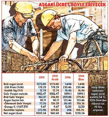 Böylece asgari ücretlinin eline ekim, kasım ve aralık aylarında bin 300 lira değil, bin 230 lira 24 kuruş geçecek. Üstelik asgari ücretin 123 lira 46 kuruşu asgari geçim indirimi sayesinde elde edilecek.