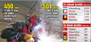 Bu yıl ara zam alamayan asgari ücretliler, Avrupa’nın yoksulu olmaktan kurtulamıyor. Türkiye, 530 Euro brüt asgari ücret ile en düşük beşinci ücrete sahip ülke durumunda.
