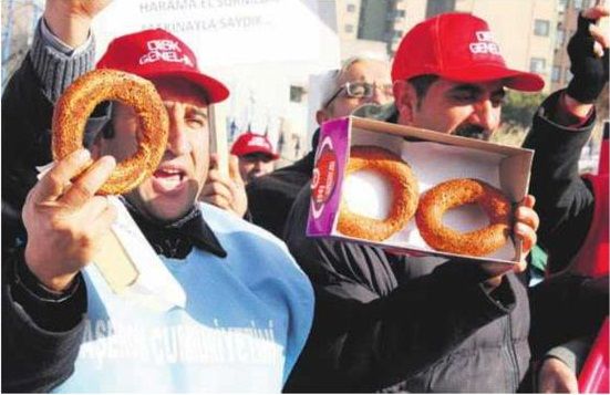 DUNYA’nın sorularını yanıtlayan Türk-İş Yönetim Kurulu üyesi Nazmi Irgat, 30 Aralık Pazartesi günü yapılacak toplantıda ücretin belirleneceğini kaydederek, Türk-İş olarak mevcut önerilerinden geri adım atmayacaklarını kaydetti. Irgat, en düşük memur maaşları nedeniyle, aynı işyerinde çalışan işçinin neredeyse yansı ücret almasının adaletsizlik olduğunu vurguladı. DİSK’ten simitli protesto Çalışma ve Sosyal Güvenlik Bakanlığı önünde toplanan bir grup DİSK üyesi de komisyon toplantısını protesto etti. Grup, açıklamanın ardından hükümeti protesto etmek için ayakkabı kutularındaki simitleri yedi.