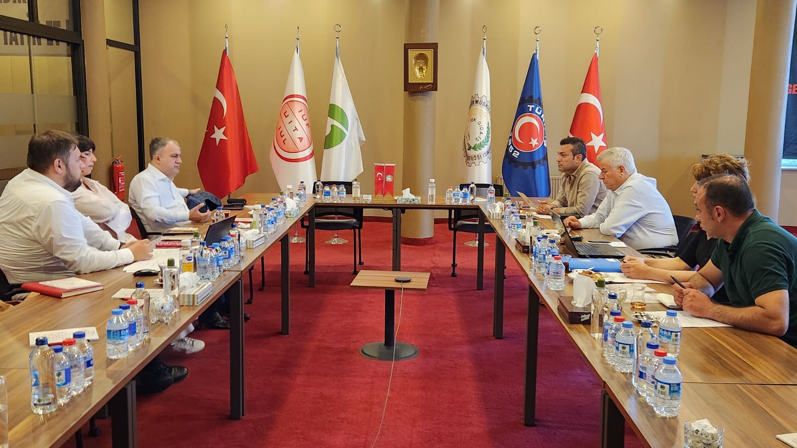Sendikamızın genel merkezinde yapılan toplantıya sendikamız adına Genel Başkanımız Mustafa Türkel, Genel Sekreterimiz İbrahim Ören, Endüstriyel İlişkiler ve ArGe Uzmanımız Tarık Tekgözli ile işyeri temsilcilerimiz Adnan Çangal ve Halime Durgut katıldı.