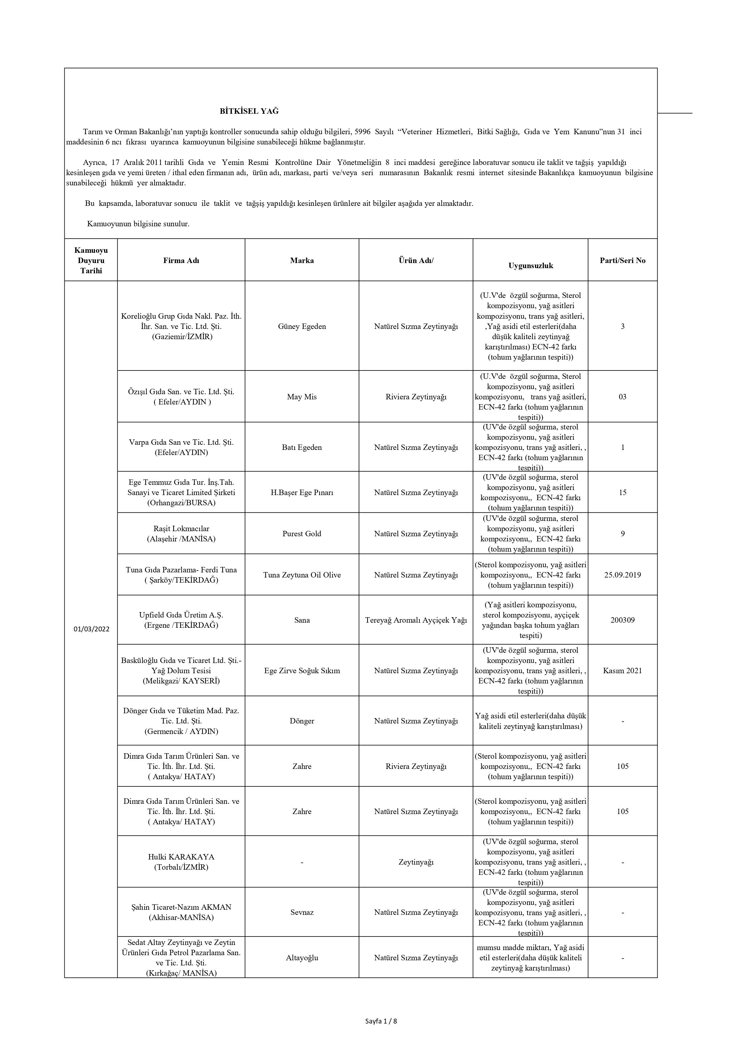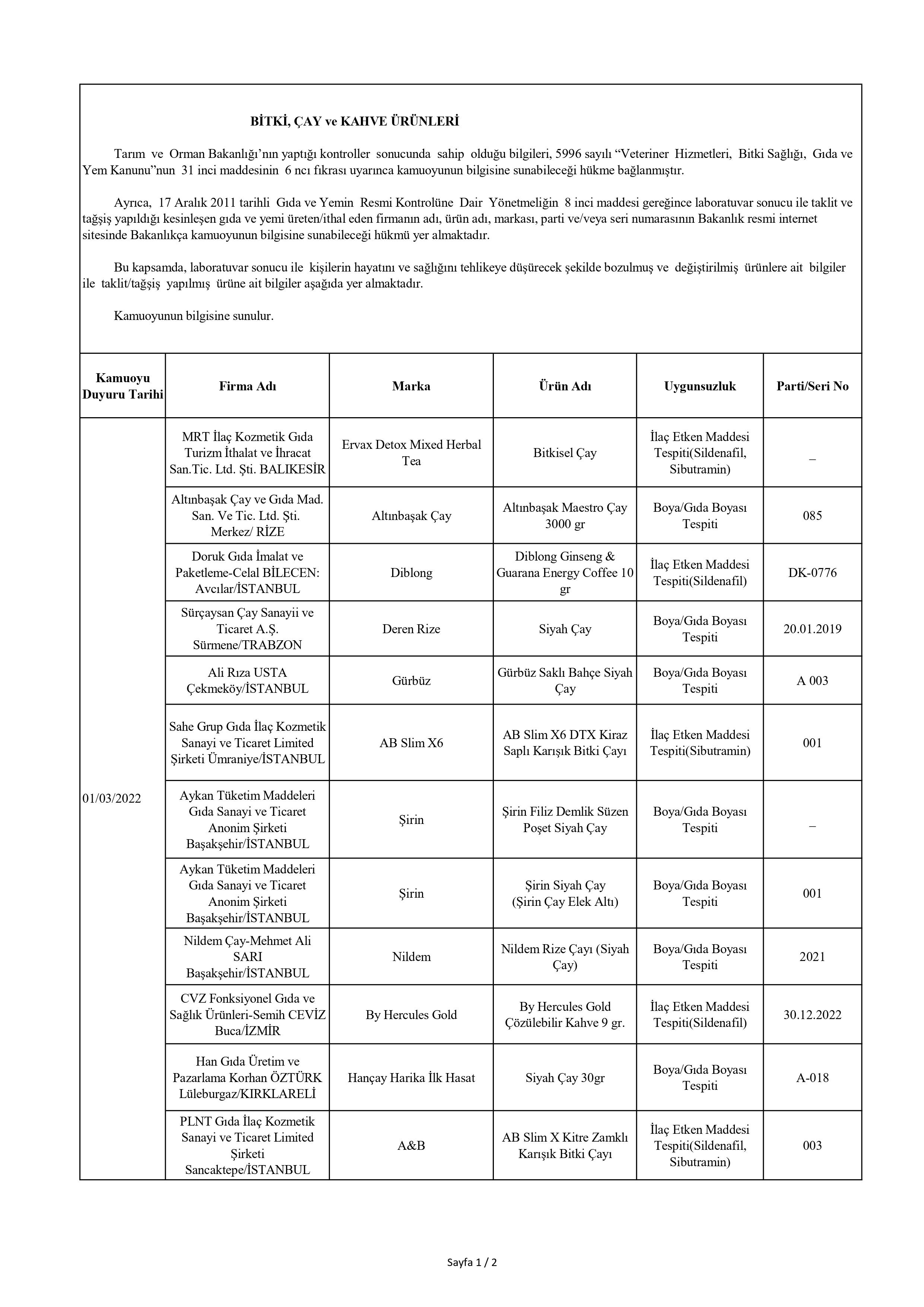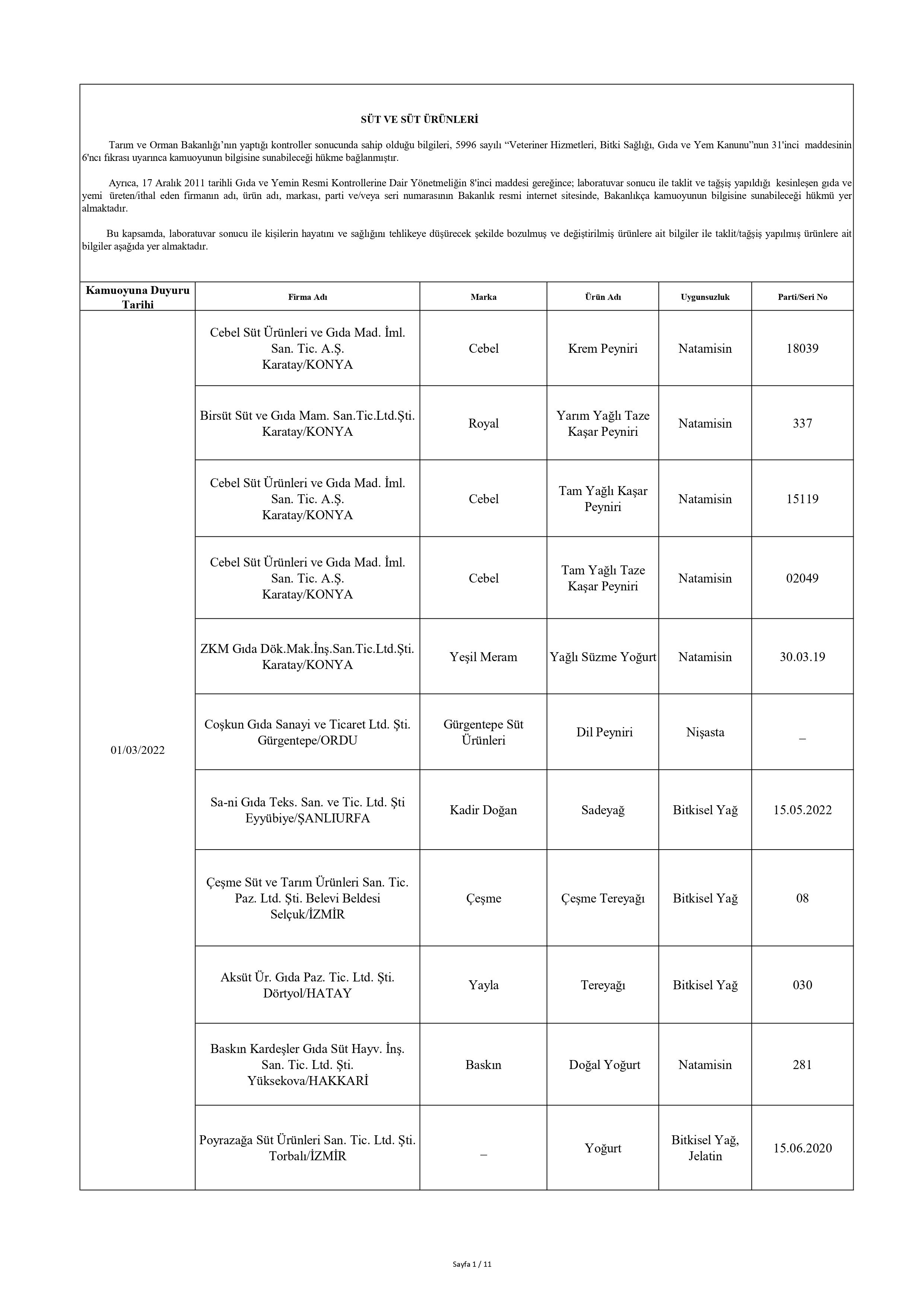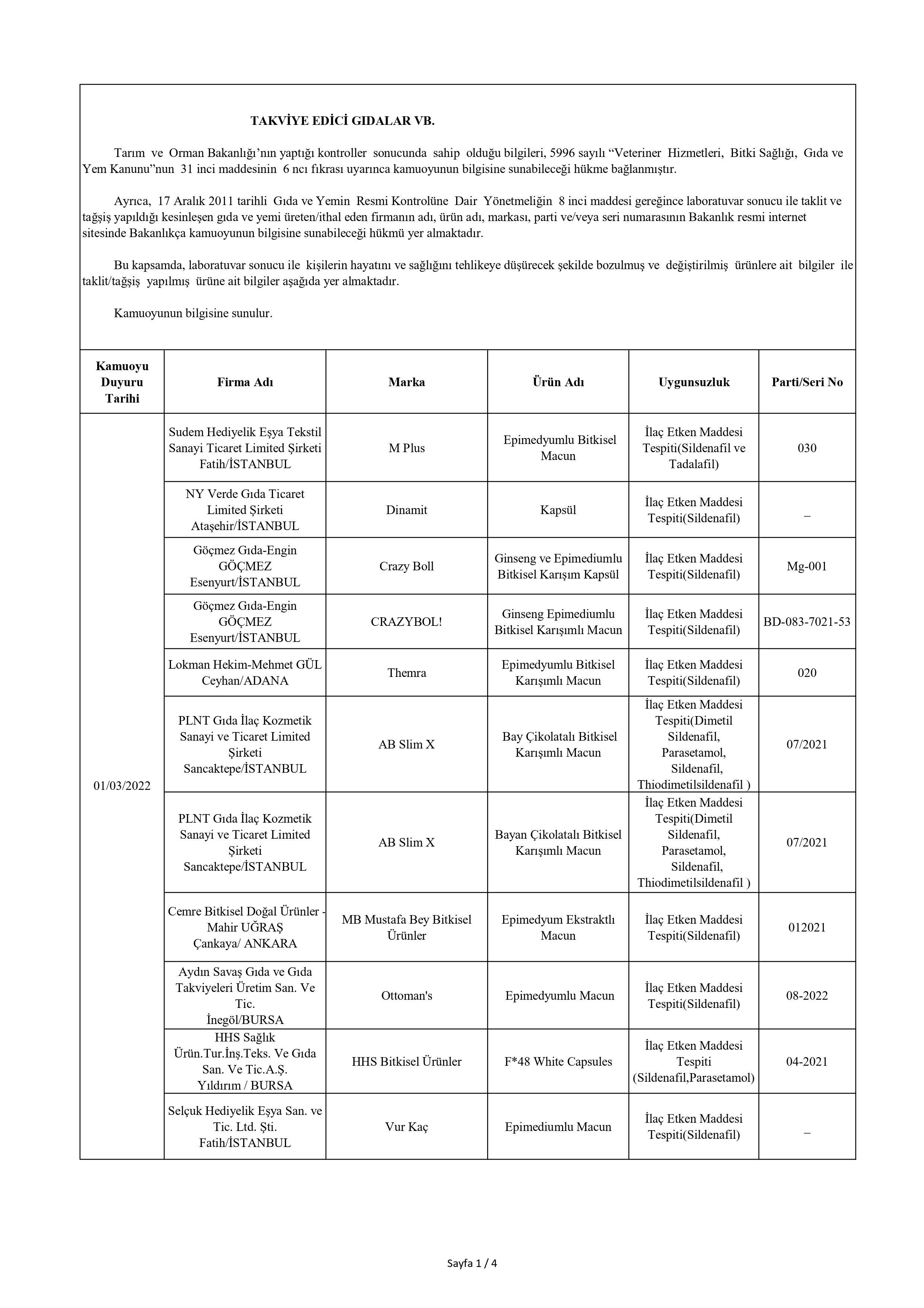 BAKANLIK TAKLİT VE TAĞŞİŞ YAPAN FİRMALARI AÇIKLADI