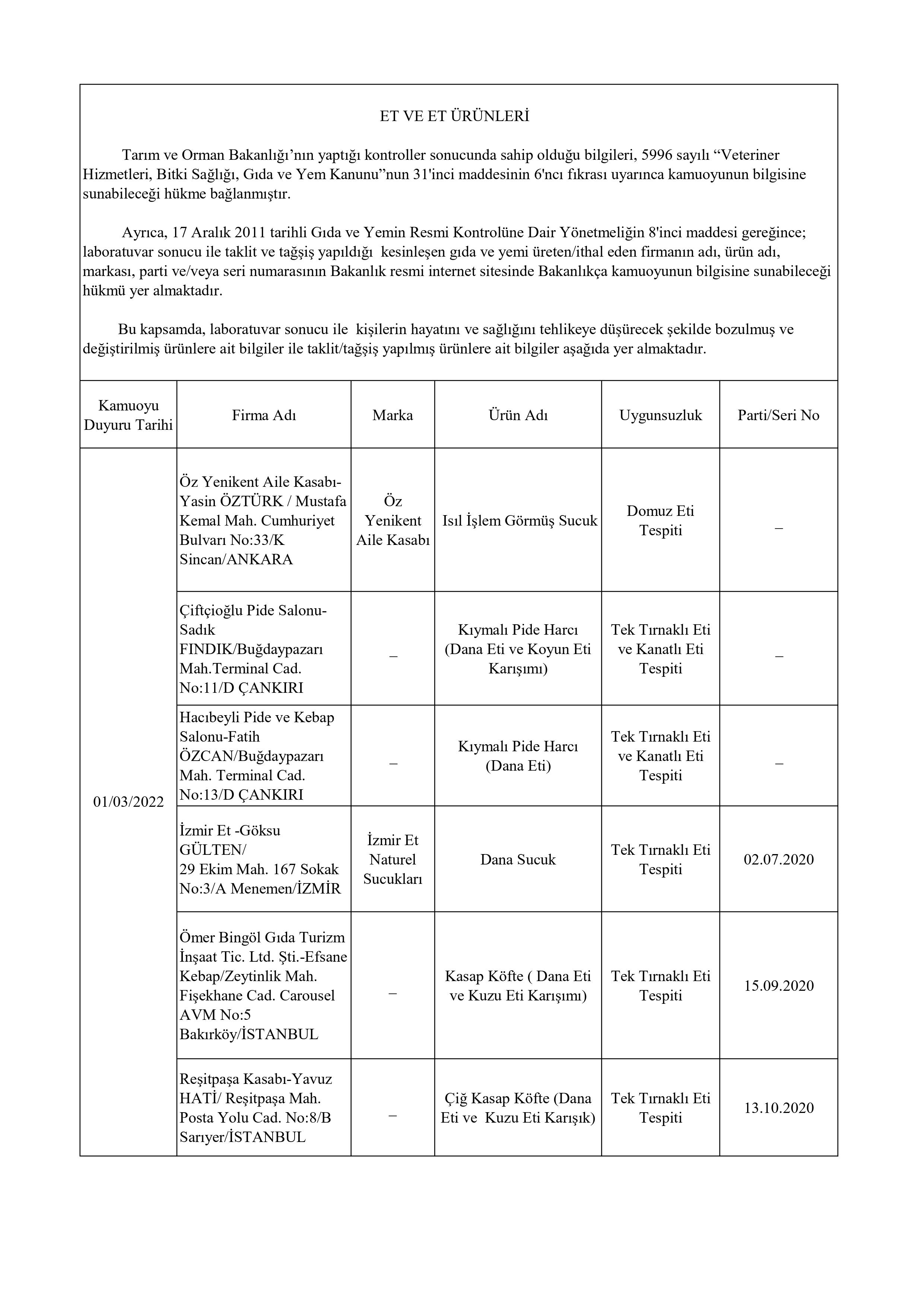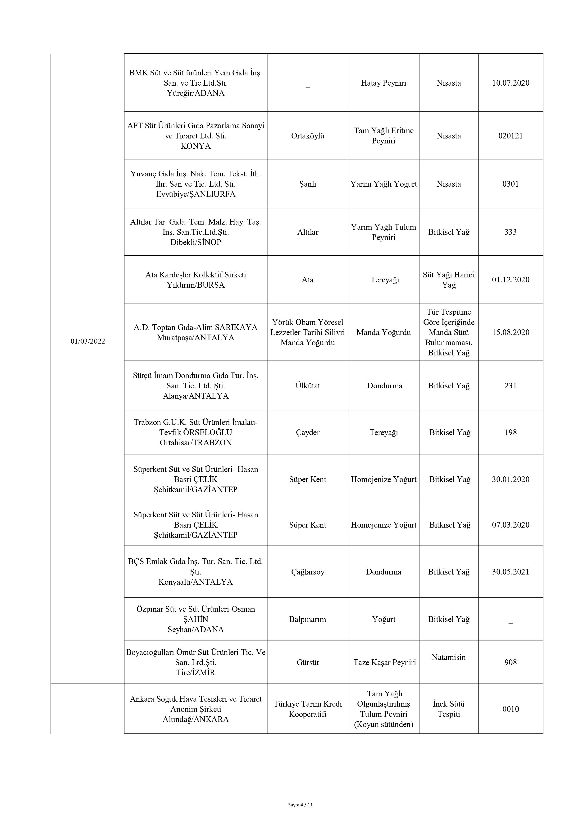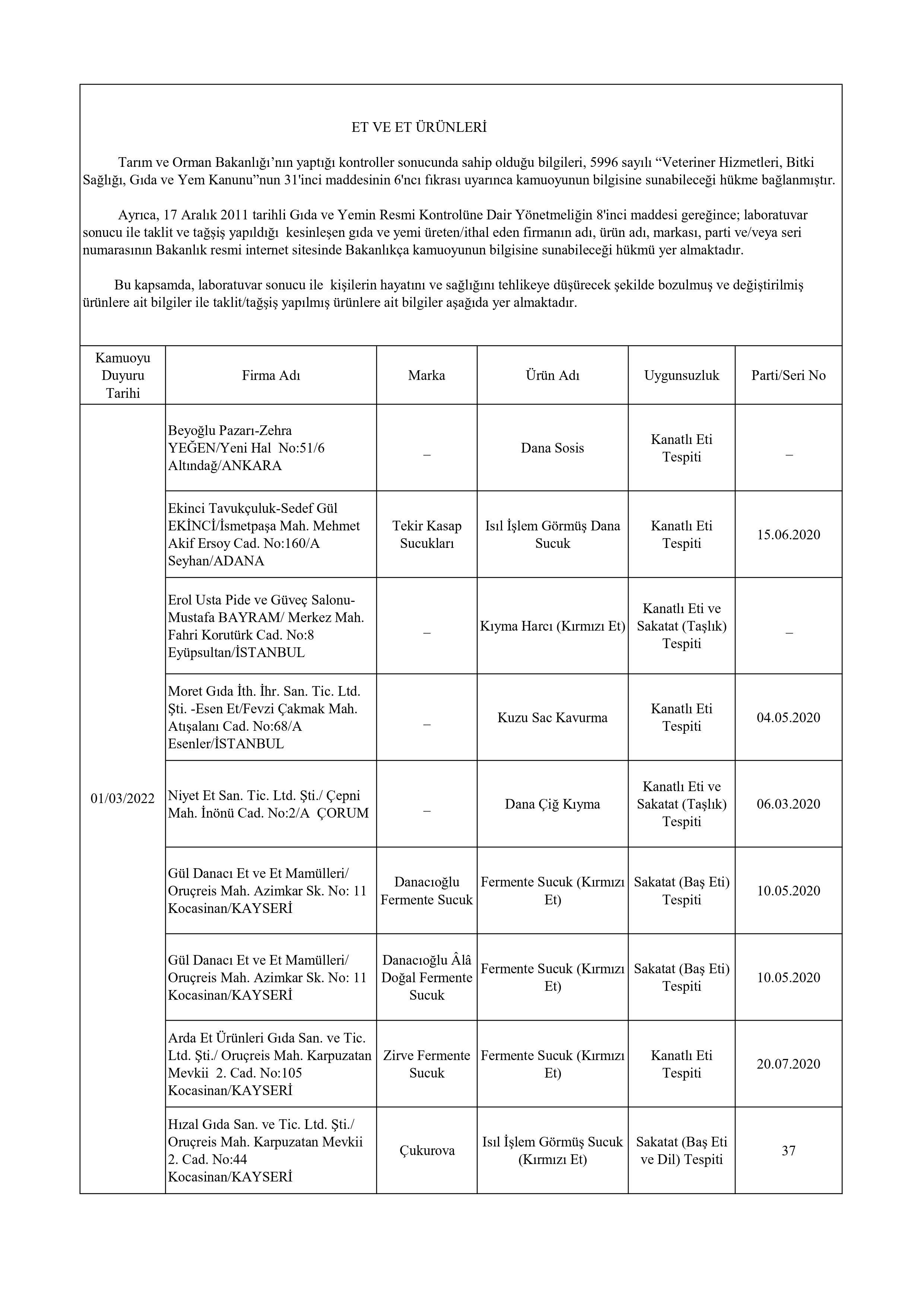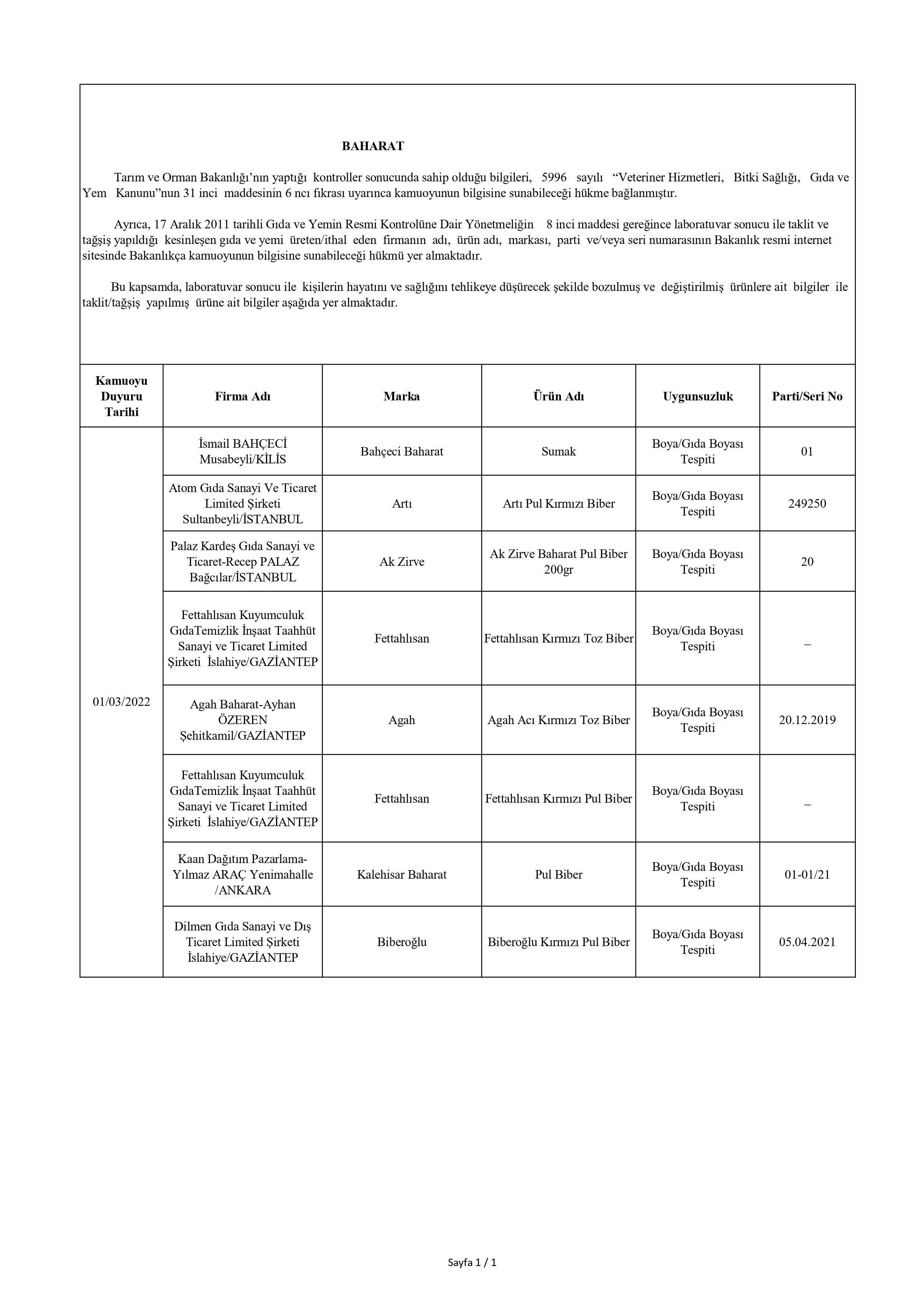 BAKANLIK TAKLİT VE TAĞŞİŞ YAPAN FİRMALARI AÇIKLADI
