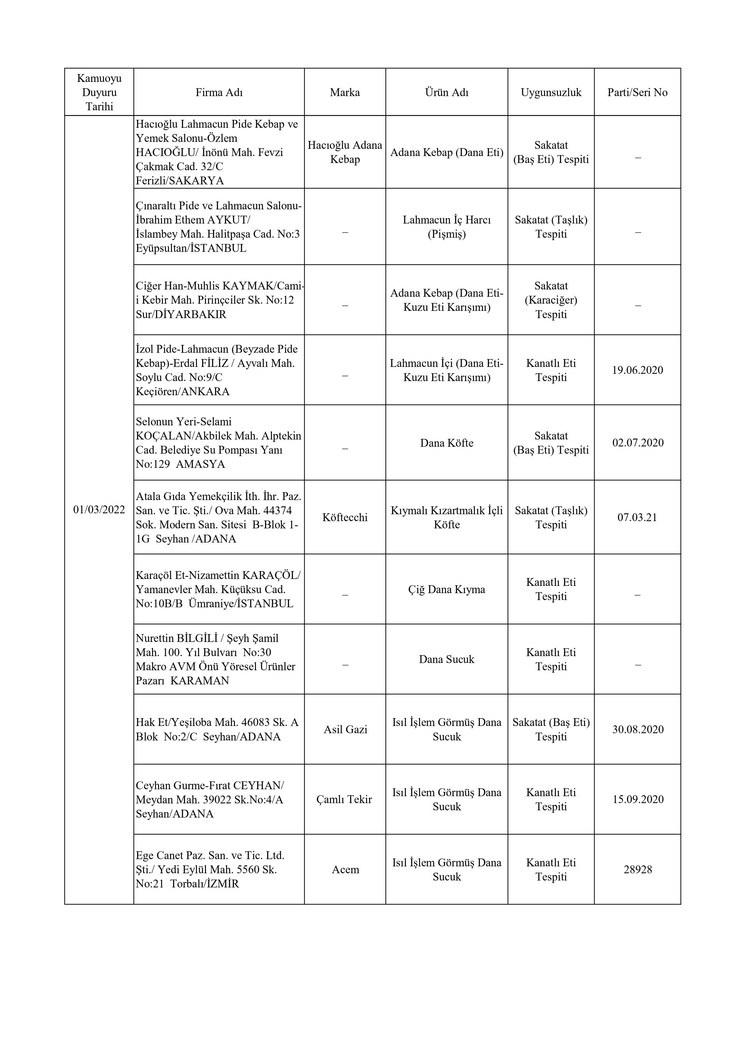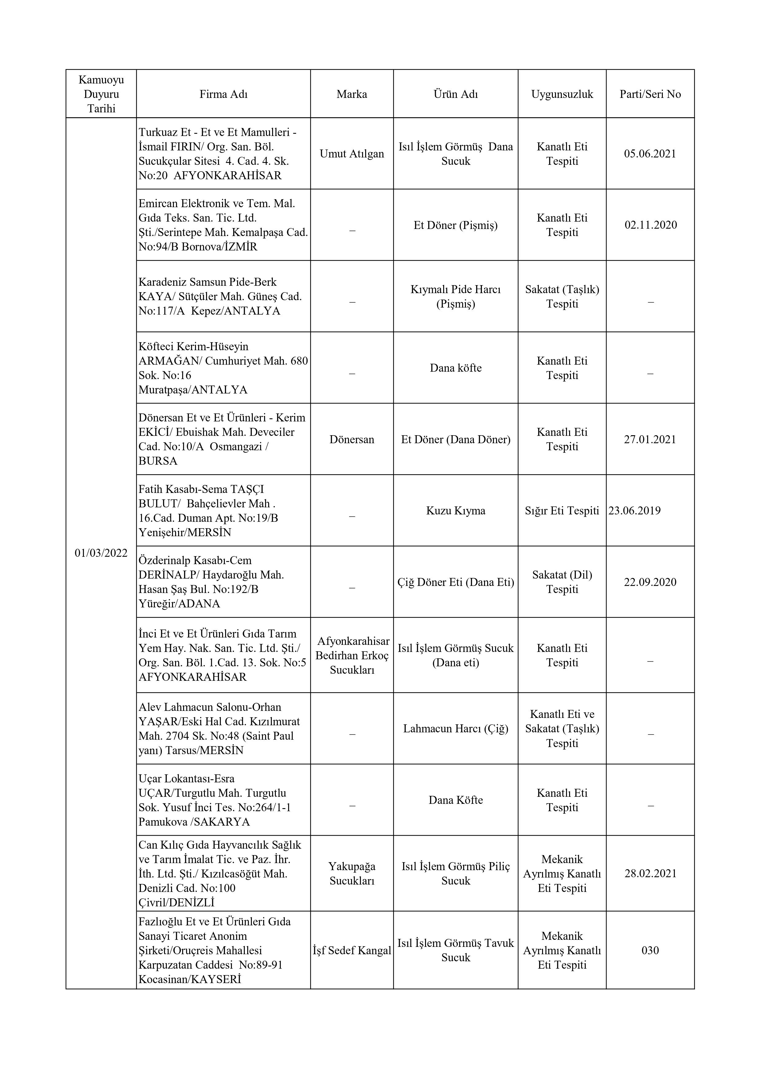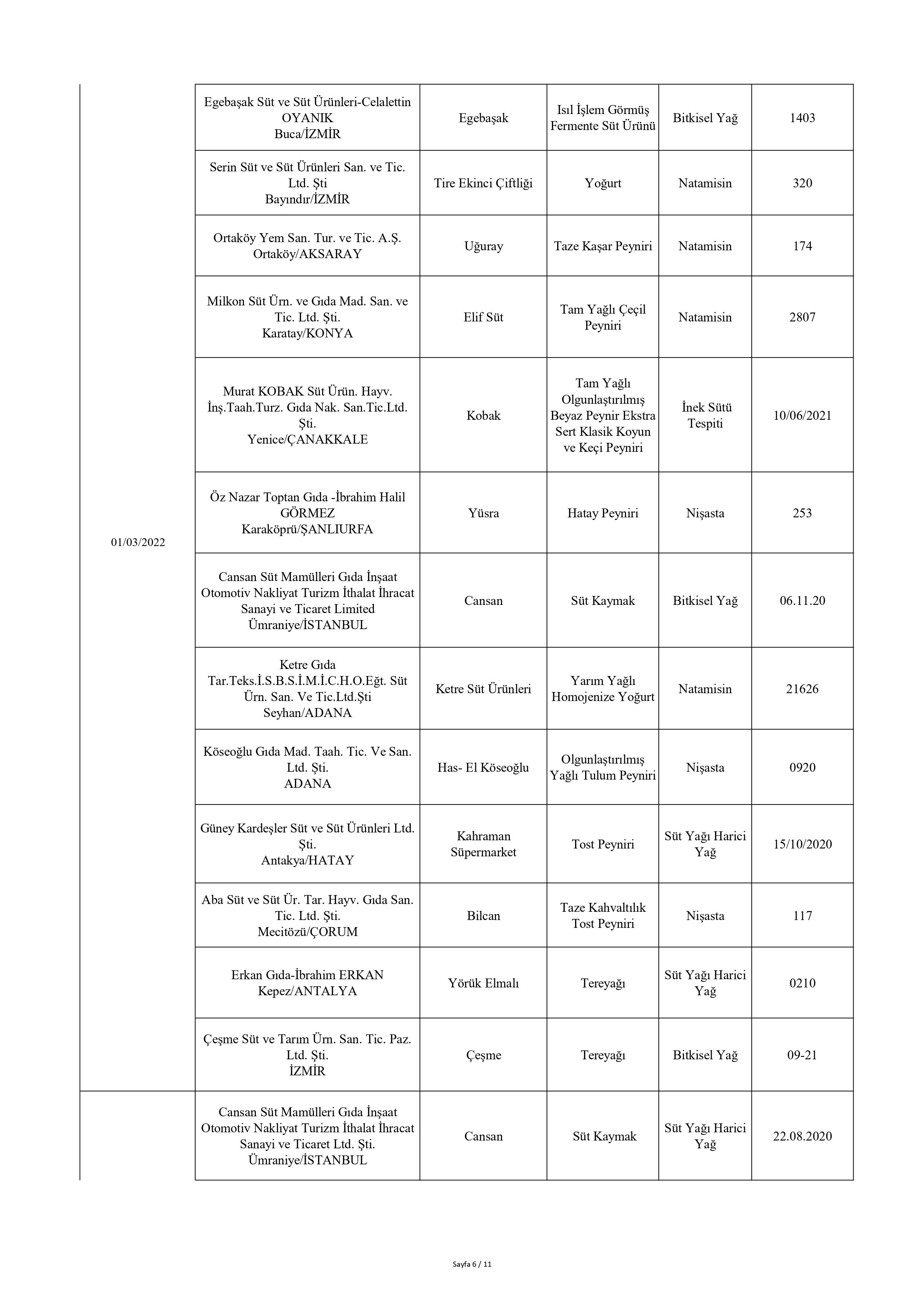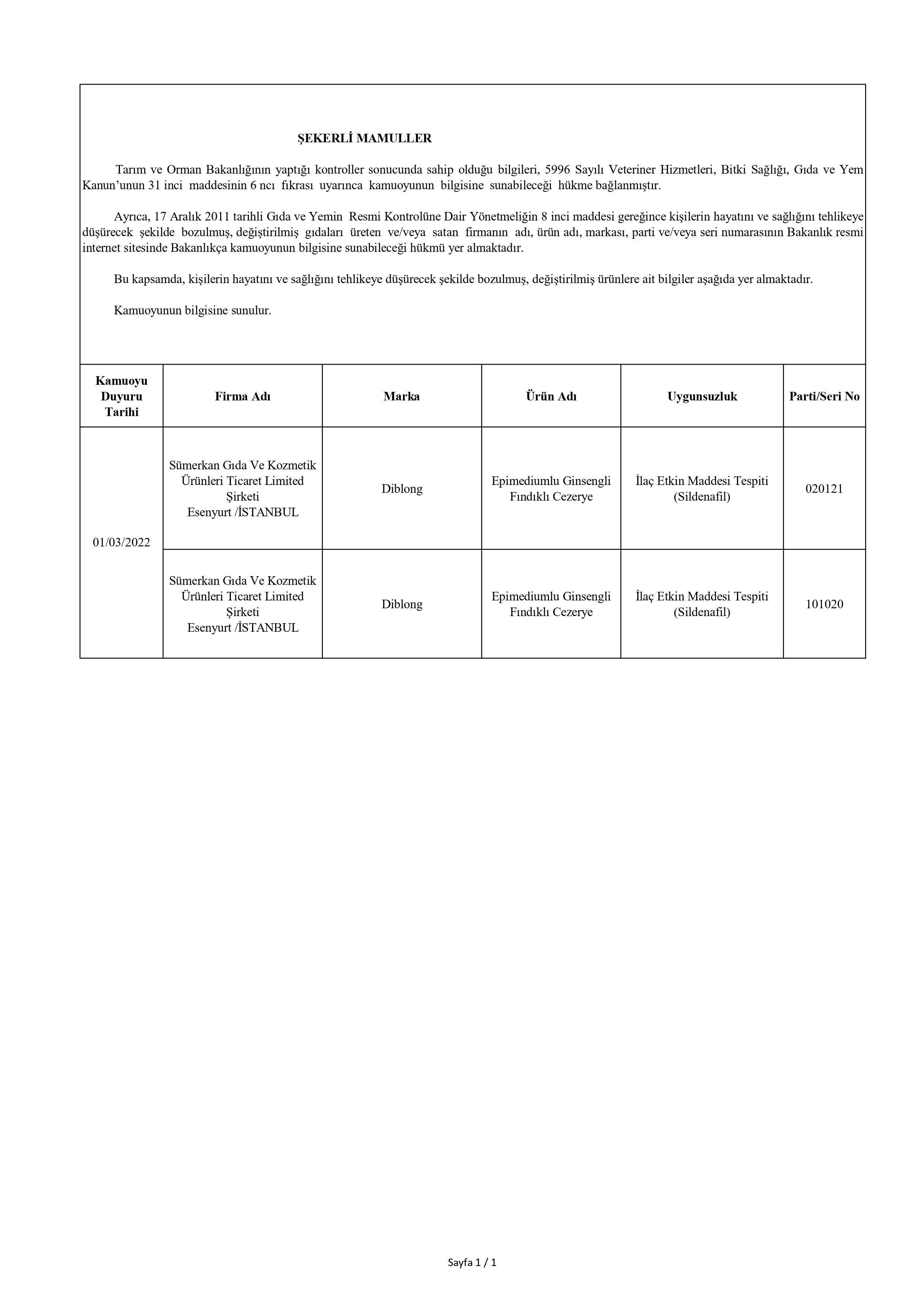 BAKANLIK TAKLİT VE TAĞŞİŞ YAPAN FİRMALARI AÇIKLADI
