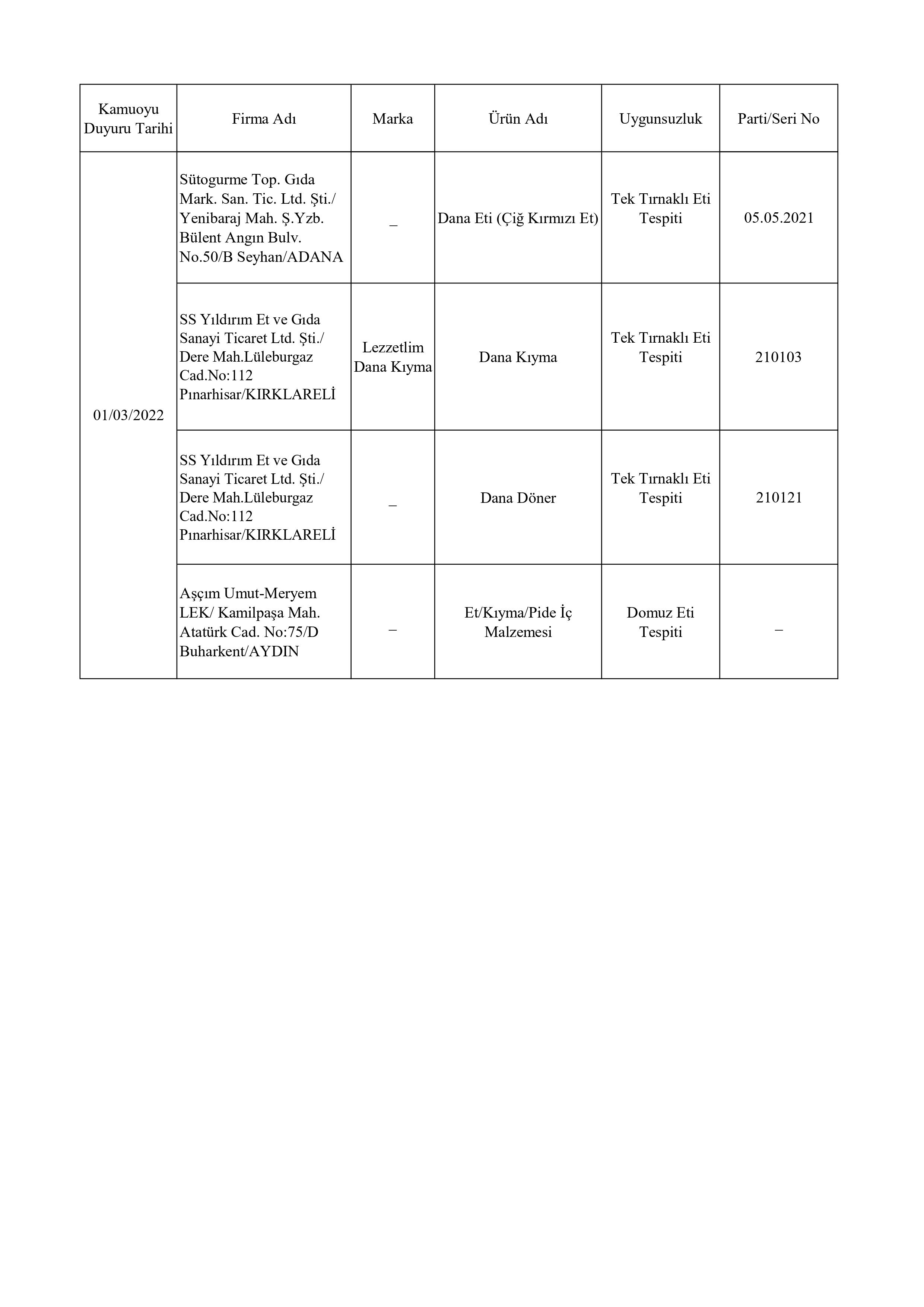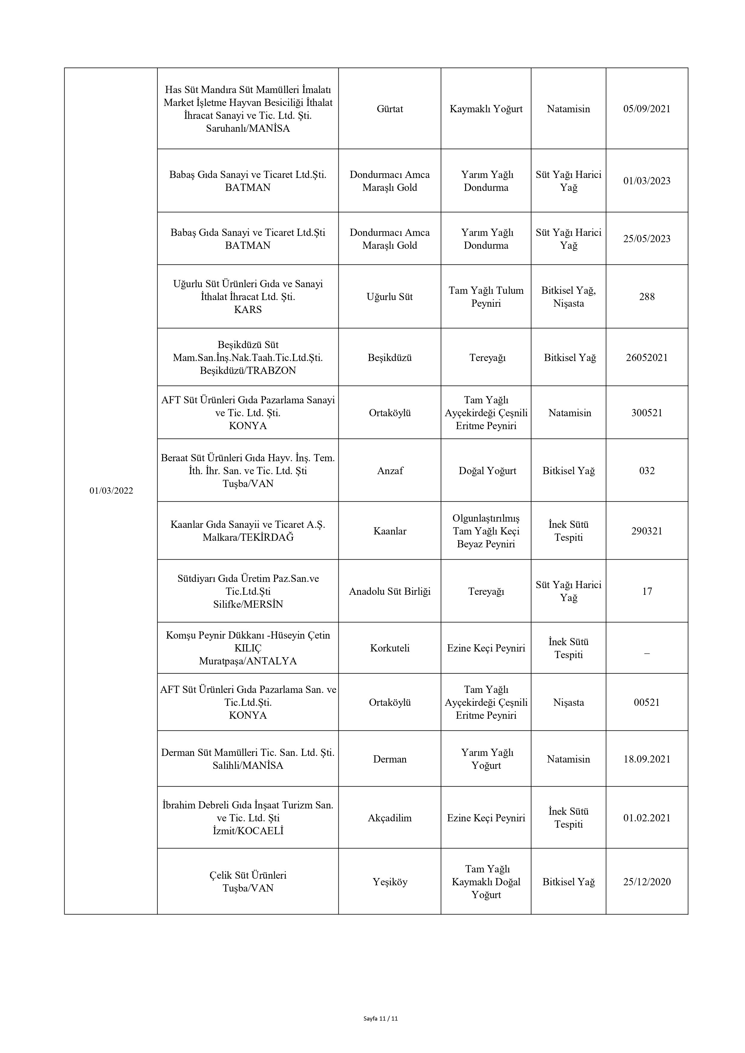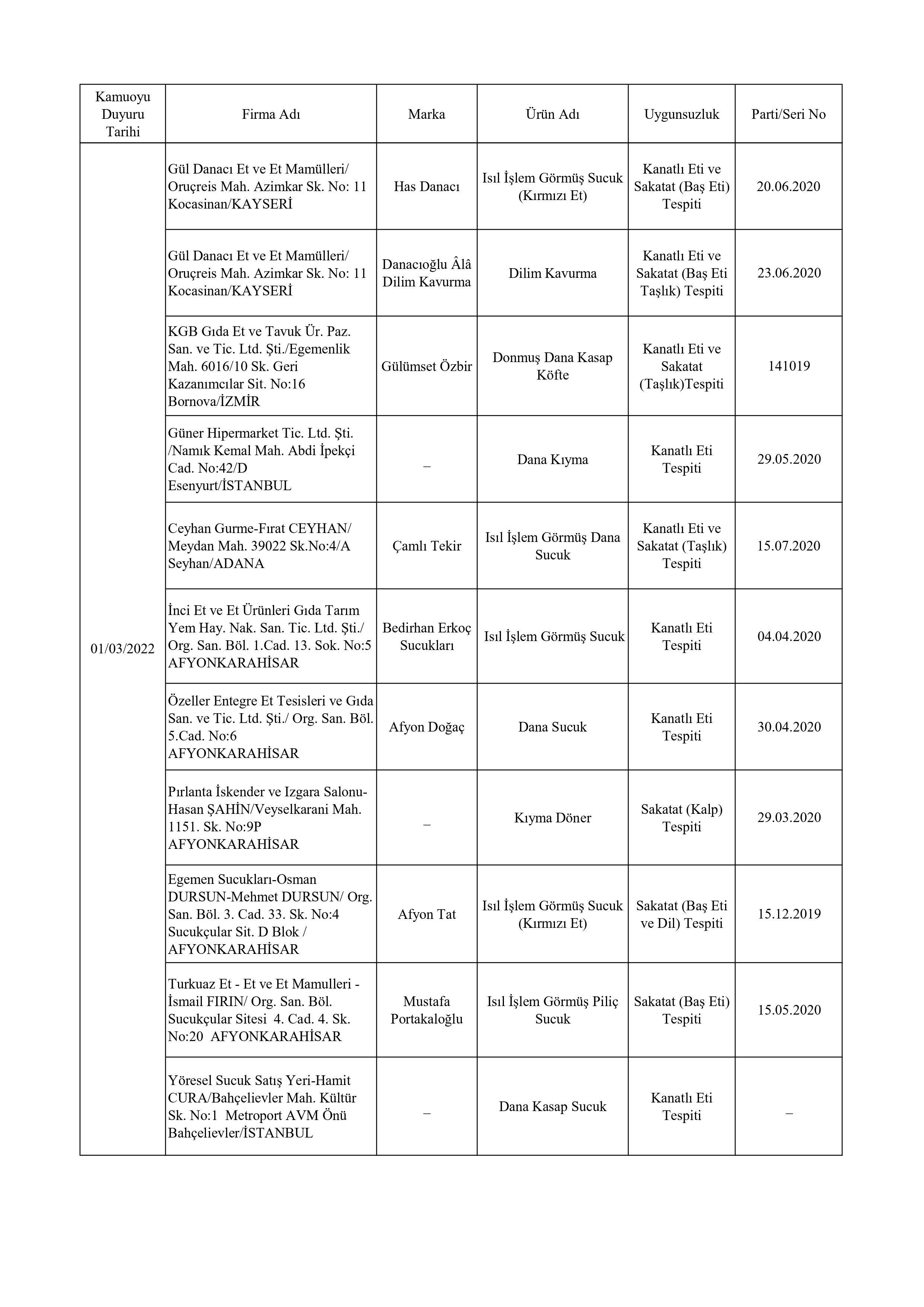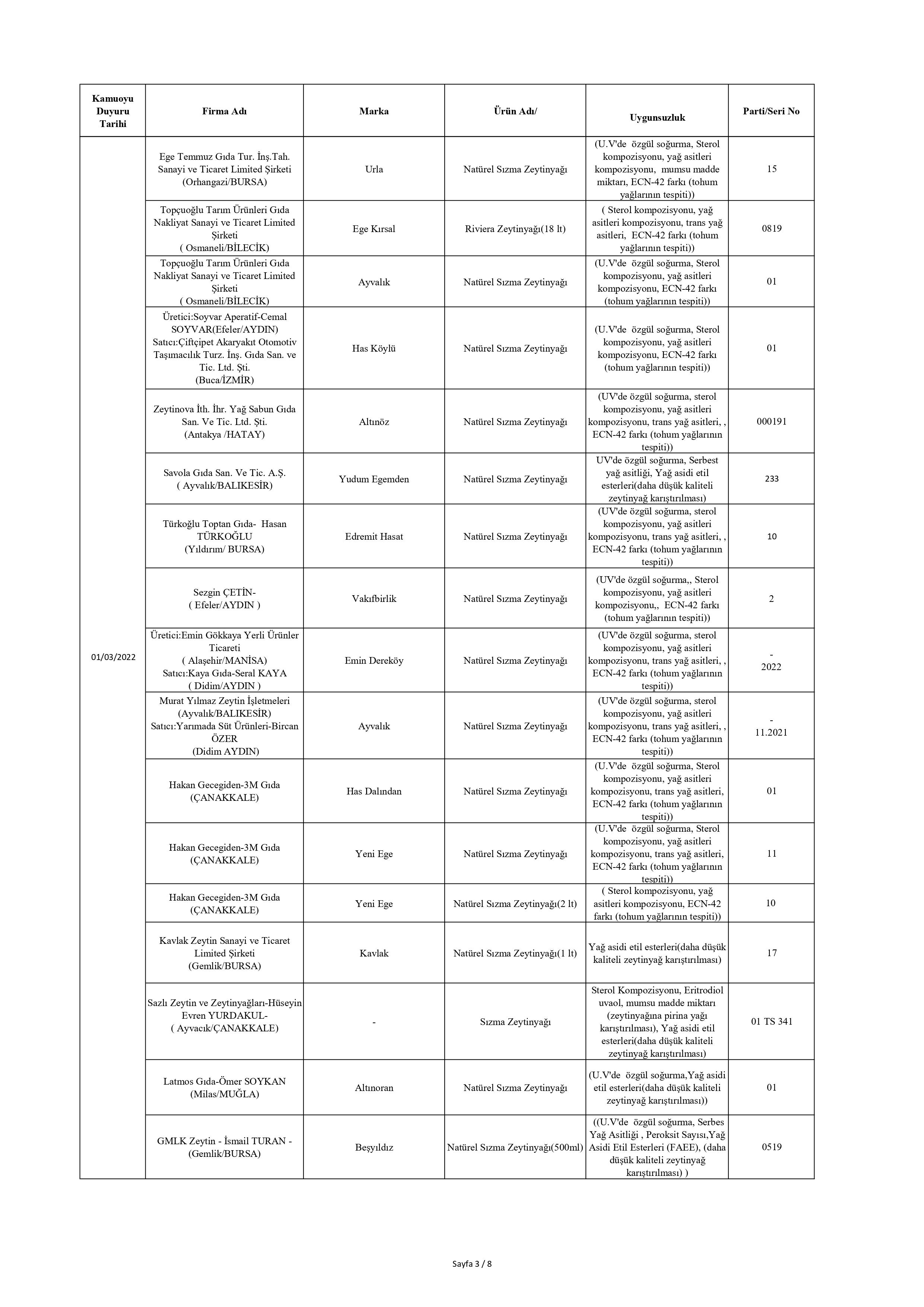 BAKANLIK TAKLİT VE TAĞŞİŞ YAPAN FİRMALARI AÇIKLADI