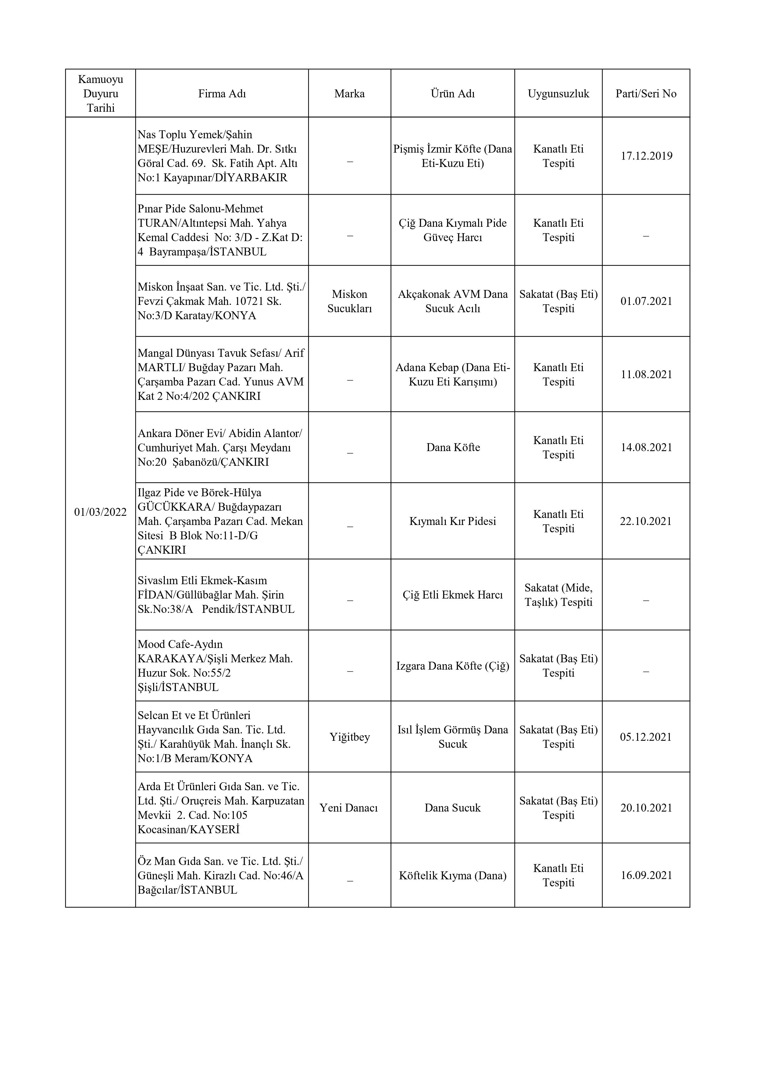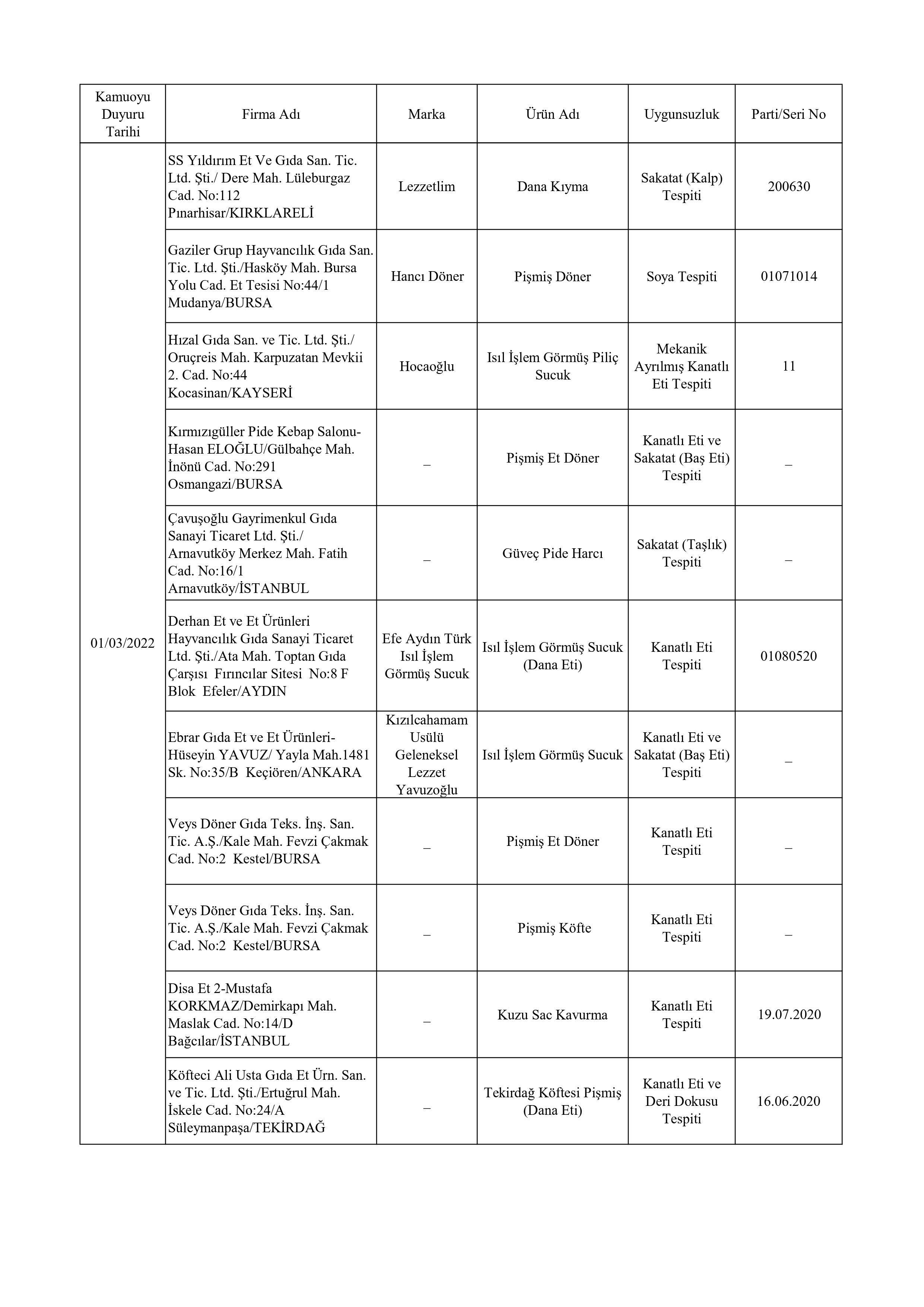 Tarım ve Orman Bakanlığı, taklit veya tağşiş yaptığı kesinleşen 371 firmayı kamuoyuna açıkladı.