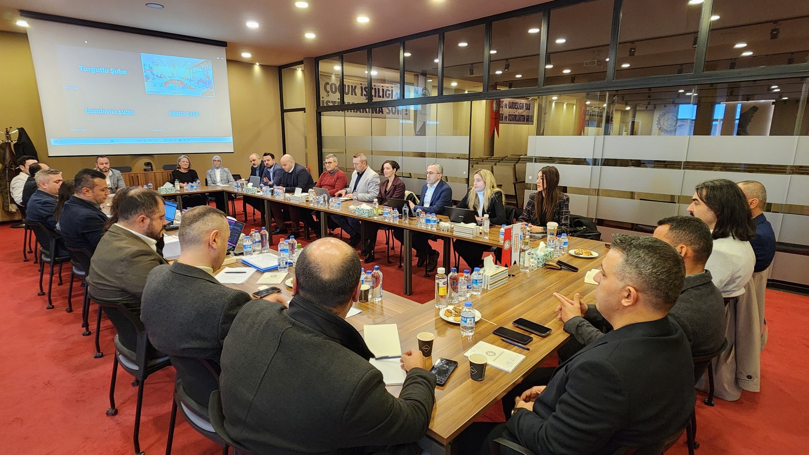 Sendikamızın genel merkezinde yapılan toplantıya sendikamız adına Genel Sekreterimiz İbrahim Ören, Adana Şube Başkanımız İbrahim Sani Gökmen, Bandırma Şube Başkanımız Şefik Kayhan, Turgutlu Şube Başkanımız Anıl Paspas, Bandırma Şube Sekreteri Ersel Özgüner, Bandırma Şube Mali Sekreterimiz Ebru Alpsu, Bandırma Şube Teşkilatlanma Sekreterimiz Samet Kızık, Bandırma Şube Eğitim Sekreterimiz Aytek Geben, Turgutlu Şube Sekreteri Sonbahar Başkocaman, Turgutlu Şube Mali Sekreteri Mustafa Çetin, Genel Sekreter Yardımcılarımız Avukat Nilgün Çelik Türkmen ve İzel Erdoğan Kılınç ile işyeri temsilcilerimiz Mehmet Tekdemir, Mehmet Yakışır, Rahman Çapar, Fedayi Erşahin ve Olgun Erdoğmuş katıldı.