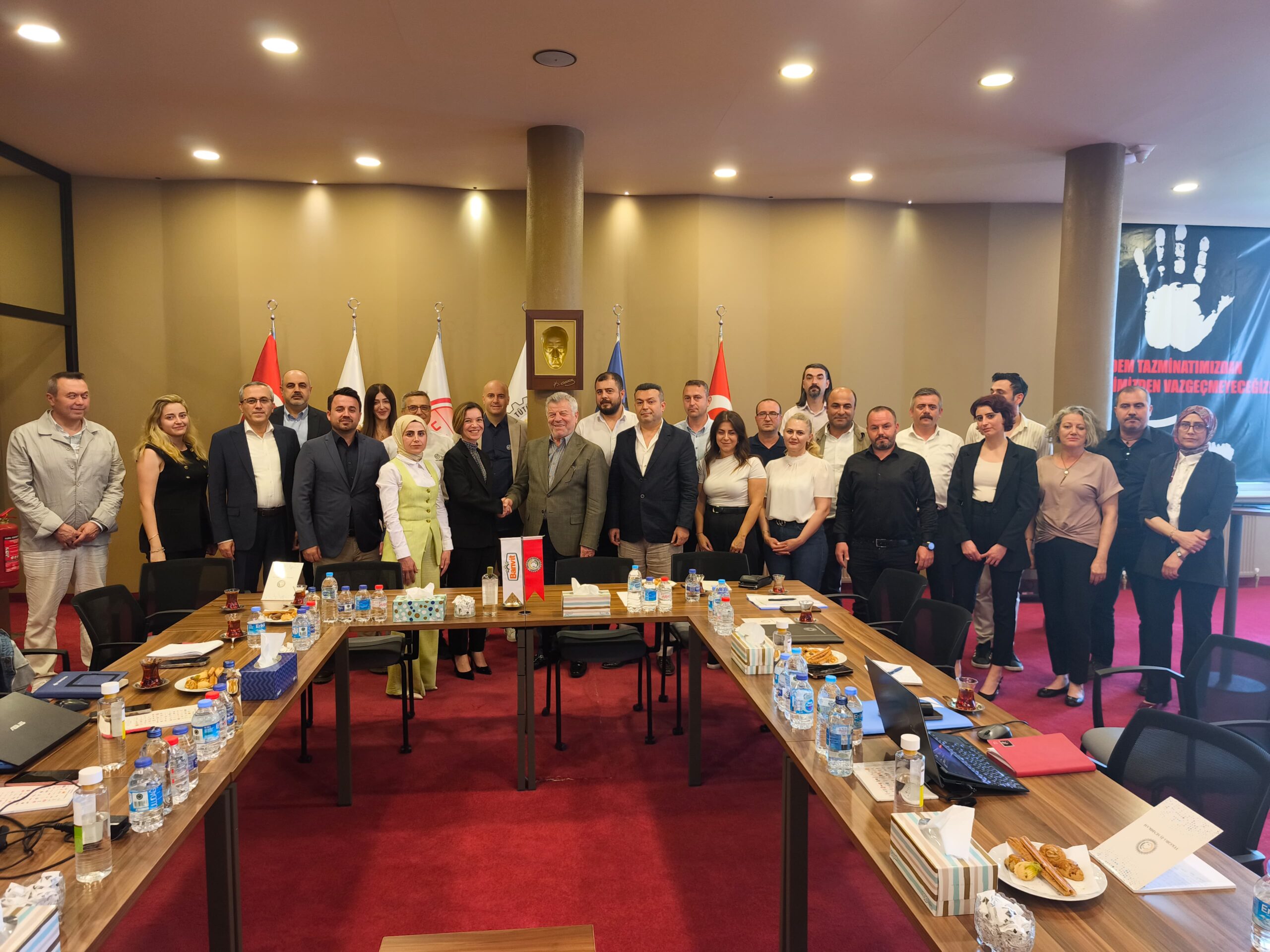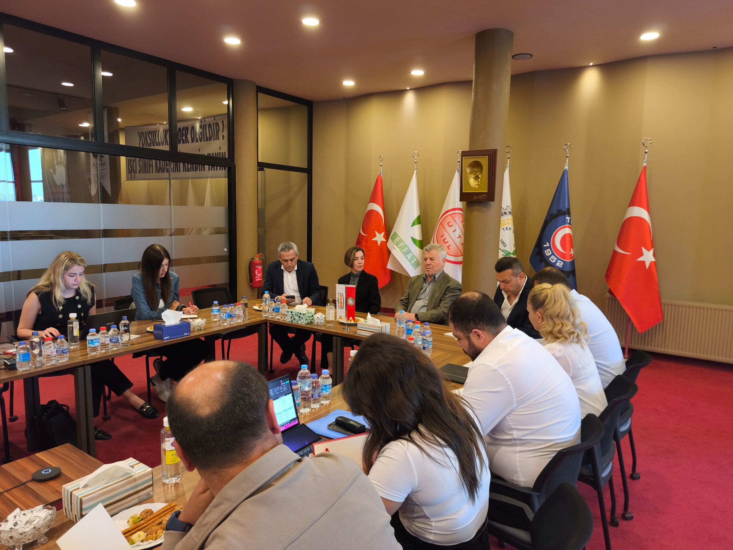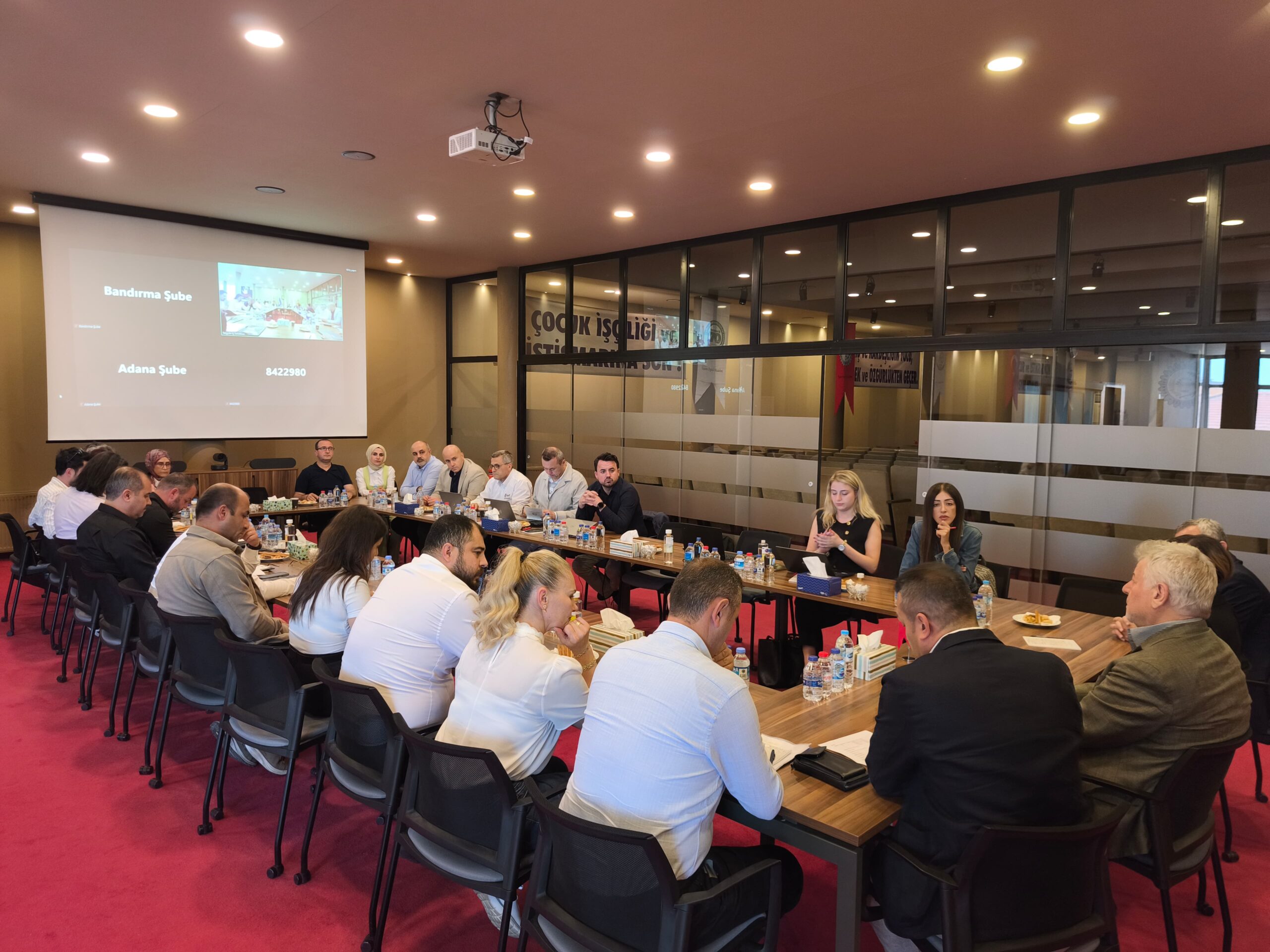 Sendikamızın genel merkezinde yapılan toplantıya sendikamız adına Genel Başkanımız Mustafa Türkel, Genel Sekreterimiz İbrahim Ören, Adana Şube Başkanımız İbrahim Sani Gökmen, Bandırma Şube Başkanımız Şefik Kayhan, Turgutlu Şube Başkanımız Anıl Paspas, Bandırma Şube Sekreteri Ersel Özgüner, Bandırma Şube Mali Sekreterimiz Ebru Alpsu, Bandırma Şube Teşkilatlanma Sekreterimiz Samet Kızık, Bandırma Şube Eğitim Sekreterimiz Aytek Geben, Turgutlu Şube Sekreteri Sonbahar Başkocaman, Turgutlu Şube Mali Sekreteri Mustafa Çetin, Genel Sekreter Yardımcımız Avukat Nilgün Çelik Türkmen, Turgutlu Şube Personelimiz Yasemin Gülmez ile işyeri temsilcilerimiz Mehmet Tekdemir, Mehmet Yakışır ve Rahman Çapar katıldı.