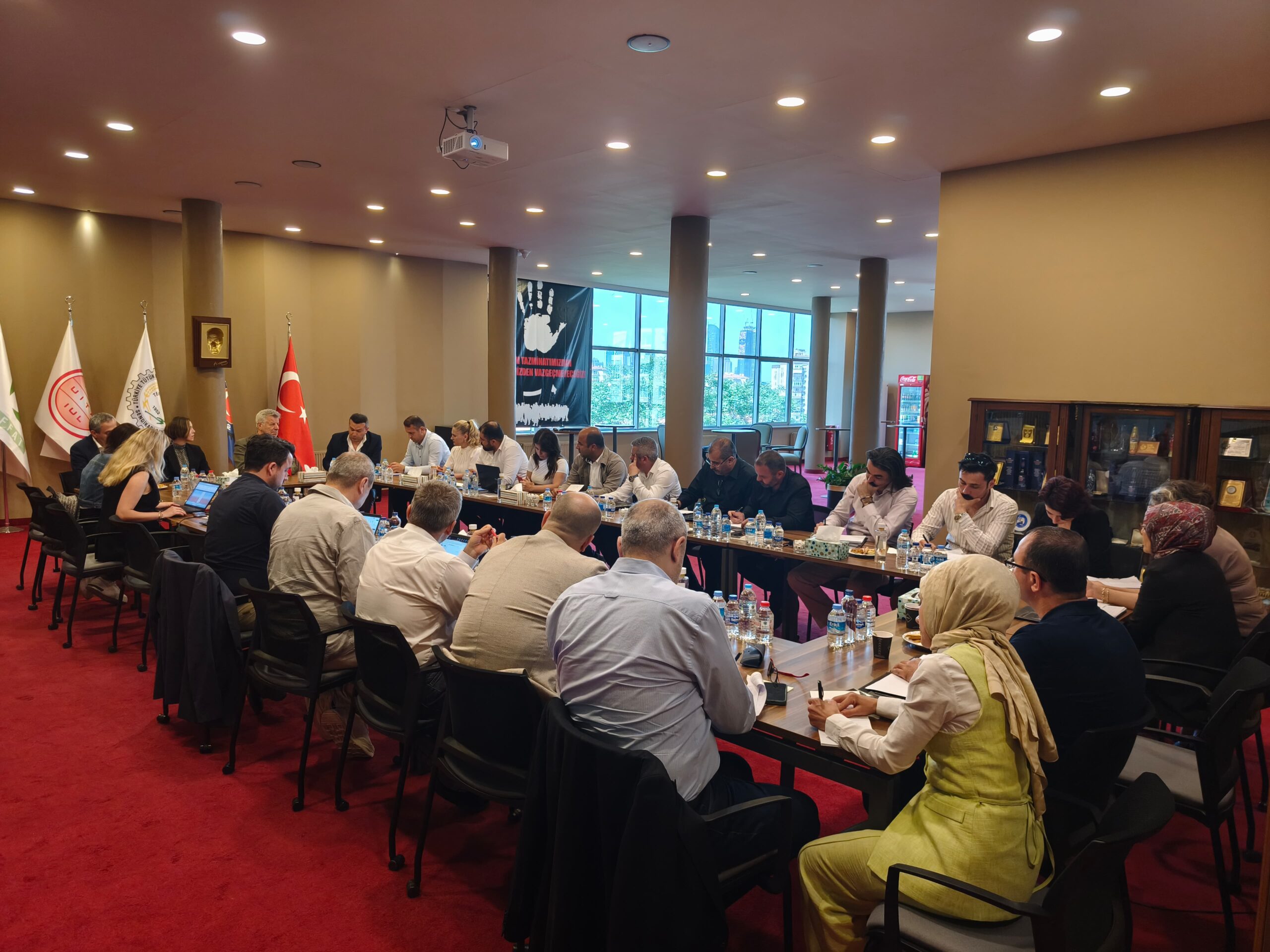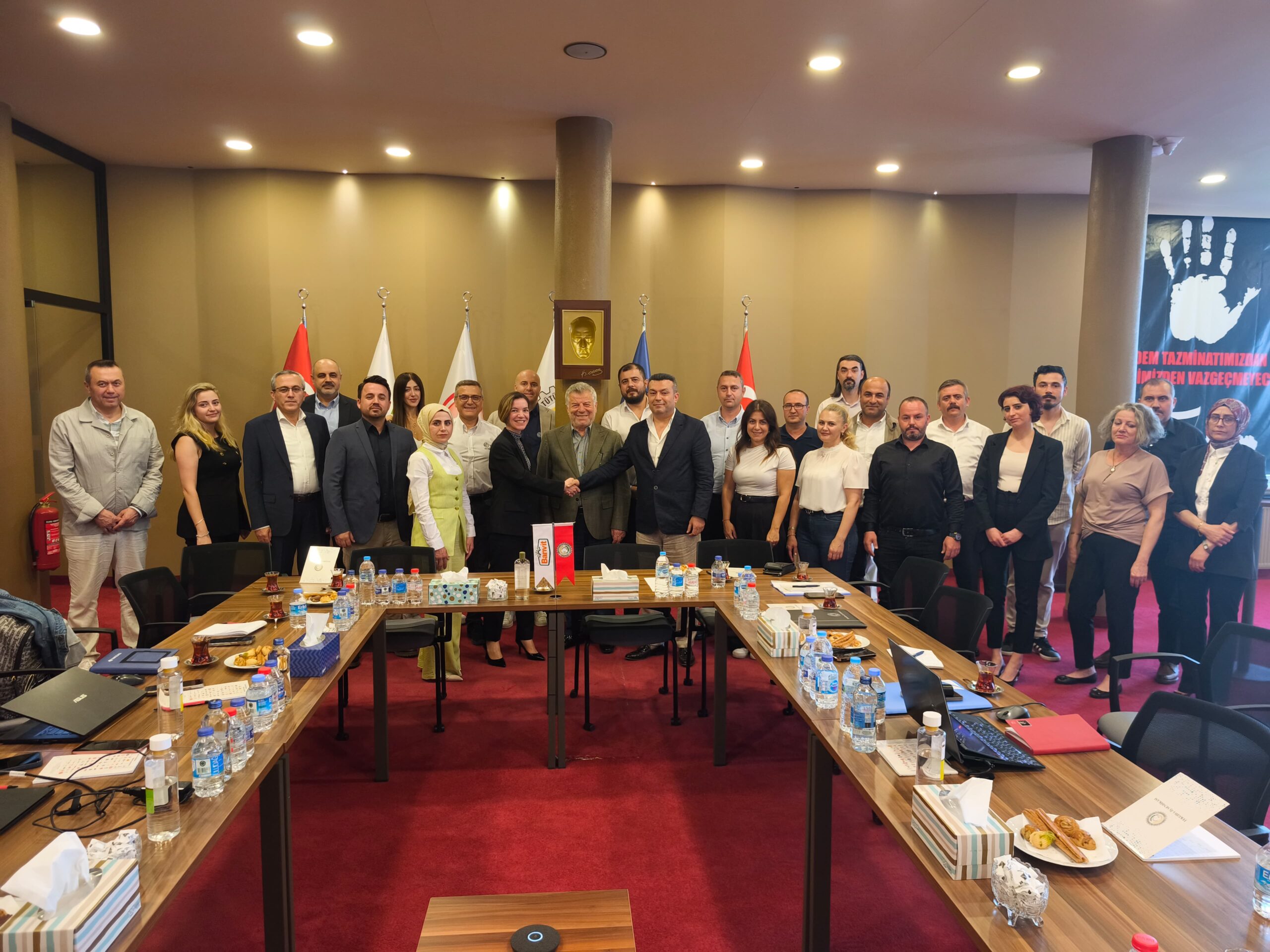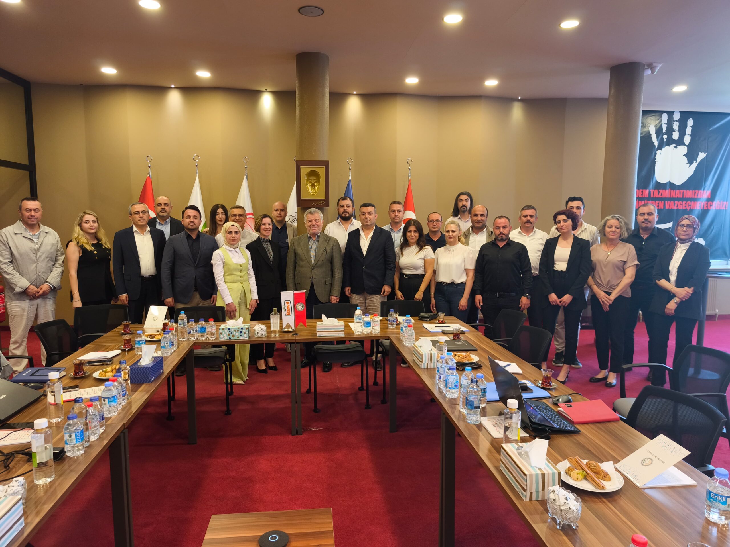 Sendikamızın genel merkezinde yapılan toplantıya sendikamız adına Genel Başkanımız Mustafa Türkel, Genel Sekreterimiz İbrahim Ören, Adana Şube Başkanımız İbrahim Sani Gökmen, Bandırma Şube Başkanımız Şefik Kayhan, Turgutlu Şube Başkanımız Anıl Paspas, Bandırma Şube Sekreteri Ersel Özgüner, Bandırma Şube Mali Sekreterimiz Ebru Alpsu, Bandırma Şube Teşkilatlanma Sekreterimiz Samet Kızık, Bandırma Şube Eğitim Sekreterimiz Aytek Geben, Turgutlu Şube Sekreteri Sonbahar Başkocaman, Turgutlu Şube Mali Sekreteri Mustafa Çetin, Genel Sekreter Yardımcımız Avukat Nilgün Çelik Türkmen, Turgutlu Şube Personelimiz Yasemin Gülmez ile işyeri temsilcilerimiz Mehmet Tekdemir, Mehmet Yakışır ve Rahman Çapar katıldı.