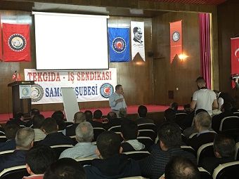 British American Tobacco (BAT) Samsun Fabrikasında çalışan üyelerimiz için çalışma yasaları ve iletişim konularında 1 günlük eğitim programı düzenledik. 10 Nisan 2016 tarihinde Türk-İş Samsun EĞİTİM ve Dinlenme Tesislerinde gerçekleştirilen eğitimin açılış konuşmasını Samsun Şube Başkanımız Ali Başkeser yaptı. Başkeser, işçi sınıfının hayatının sadece fabrikada üretimle sınırlı olmaması gerektiğine dikkat çekerek, ülkede ve dünyada yaşanan sorunlara karşı da duyarlı olunması gerektiğini söyledi. Ali Başkeser’in ardından konuşan Sendikamızın Genel EĞİTİM SEKRETERİ Kemal Köse de, sendika olarak eğitime verdikleri öneme değinerek, bilinçli işçilerin sendikalar için de kazanç olduğunu vurguladı. Köse, sendika olarak eğitim programlarına devam edileceğini, bu programlarla üyelerin yasal haklarıyla ilgili bilgi sahibi olmalarının amaçlandığını söyledi.