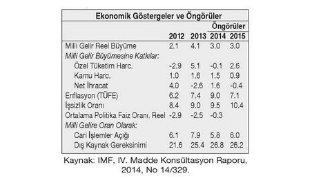 • İç talep büyümenin ana kaynağı oluşturma işlevini yitirmiştir. 2013’te milli gelir büyümesine yüzde 5.1 oranında katkı yapan iç talep büyümesi 2014’te reel olarak sıfırlanmıştır. Net ihracat ve kamu harcamalarında gözlenen seyir ise büyümeye reel bir ivmelendirme kazandırmaktan uzaktır. Bu arada iç talebin katkısında yıllar itibarıyla gözlenen dalgalanma ise dikkat çekicidir. Söz konusu istikrarsızlık, kuşkusuz, dış kaynak girişlerindeki dalgalanmaların doğrudan sonucudur.