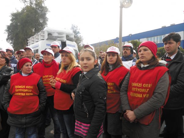 İçerideki çalışma koşullarını beğenmediğimiz için yasal hakkımız olan, sendikaya üye olma hakkımızı kullandık. Daha sonra ise işten çıkarıldık. İşimizi geri istediğimiz için direnişe başladık. İşe iade davası da açtı sendika. Şu an direniş iyi gidiyor. Hakkımızı alıncaya kadar da buradayız, direneceğiz.
