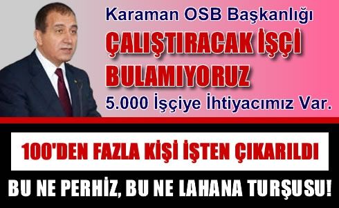 Karaman Organize Sanayi Bölgesinde faaliyet göstermekte olan bir fabrikadan bir ay içerisinde yüzden fazla işçinin işten çıkarıldığı bilgisi tarafımıza ulaştı.