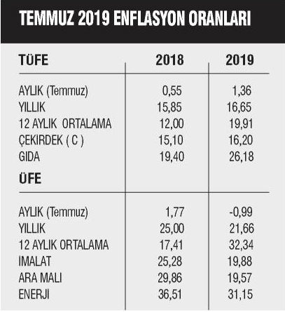 Temmuz ayı aylık TÜFE beklentisi yüzde 1.55 idi… Gerçekleşen oran yüzde 1.36 oldu. Bu yıla kadar Temmuzda aylık TÜFE oranı yalnızca 2016 yılında yüzde birin üstünde (1.16) olmuş, diğer yıllarda yaz olduğu için eksi veya yüzde birin altında çıkmıştır.