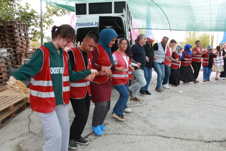 Emekçiler sık sık “İş, ekmek yoksa barış da yok.”, “Yağmur çamur olsa da, kış kıyamet kopsa da direneceğiz.”, “Birleşe birleşe kazanacağız.”, “Hak verilmez alınır, zafer sokakta kazanılır.”, “Polonez işçisi direnişin simgesi.”, “Direne direne kazanacağız” sloganları attı. Daha sonra direniş halayları çekildi.