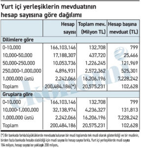 “Türkiye nüfusu kaç ki, bu sayılar herhalde yanlış” diye düşünülmesin; birden fazla hesabı olanlar var. Ayrıca mudi sayısı ile hesap sayısının niye farklı olduğunu da tablonun hemen altında izah ediyorum. Ama zaten asıl konumuz bu değil.