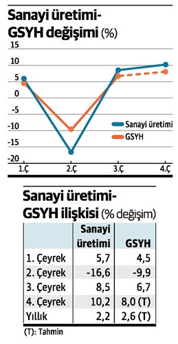 Sanayi üretiminin yüzde 10.2 arttığı son çeyrekte GSYH’deki artışı yüzde 7, hatta 8 olabilir.