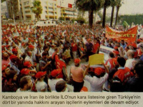 Kamboçya ve iran ile birlikte İLO’nun kara listesine giren Türkiye’nin dört bir yanında hakkını arayan işçilerin eylemleri de devam ediyor. aşırı güç kullanmasına izin veren Türkiye, Uluslararası Çalışma Örgütü (ILO)tarafından ‘işçi haklarına saygı duymayan ülkeler’ arasında gösterilerek kara listeye alındı.