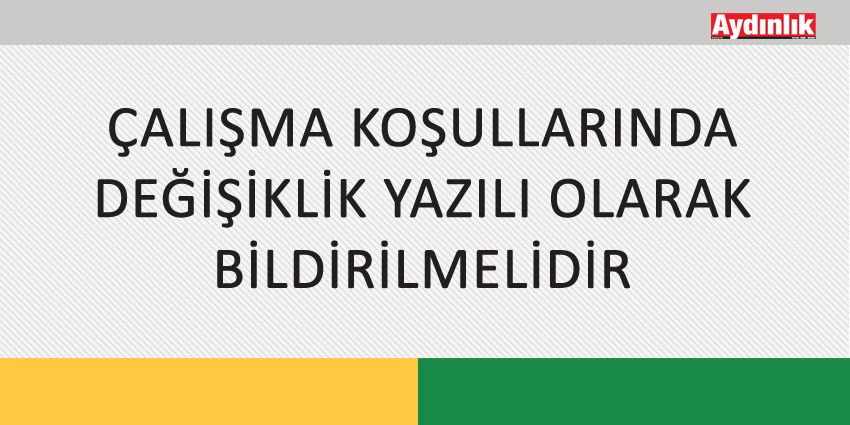 ÇALIŞMA KOŞULLARINDA DEĞİŞİKLİK YAZILI OLARAK BİLDİRİLMELİDİR