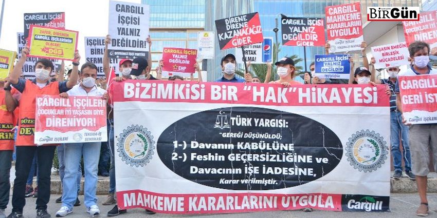 ABD´li gıda tekeli Cargill ‘de sendikalı oldukları için işten atılan ve 875 gündür direnişlerini sürdüren işçiler, dün Cargill ‘in önemli müşterilerinden PepsiCo Türkiye´nin genel müdürlüğü önünde eylemdeydi.
