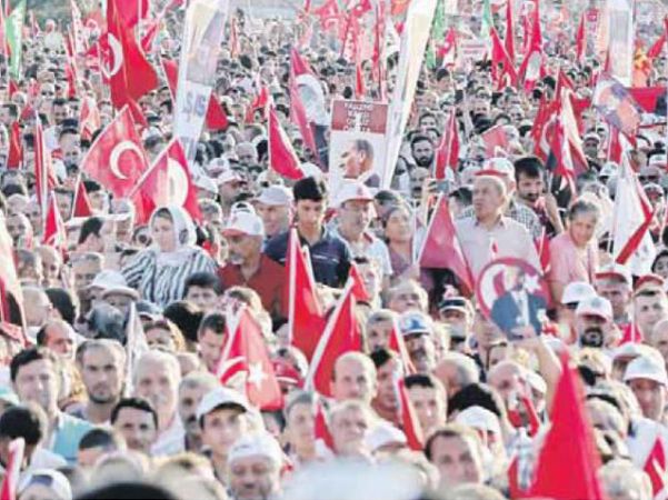 TAKSİM’de yüzbinlerin buluştuğu Demokrasi ve Cumhuriyet mitinginde yurttaşlar hep bir ağızdan "Mustafa Kemal’in askerleriyiz" sloganını atarken, CHP lideri Kemal Kılıçdaroğlu’nun, konuşmasında 15 Temmuz’da darbe girişiminde bulunan FETÖ’den hiç bahsetmeyip, sivil dikta vurgusu yapması dikkat çekti.