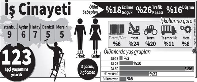 Azalmak bir yana gittikçe artan iş cinayetlerinde yaşamını yiterenlerin büyük bölümünü sendikasız çalışanlar oluşturdu.